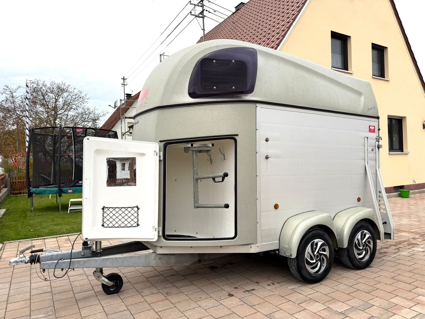 - Sattelkammer abschließbar mit herausziehbaren Sattelhaltern, Innenbeleuchtung, Staufach, Trensenhalter