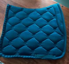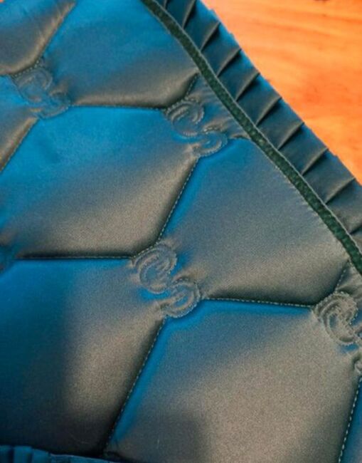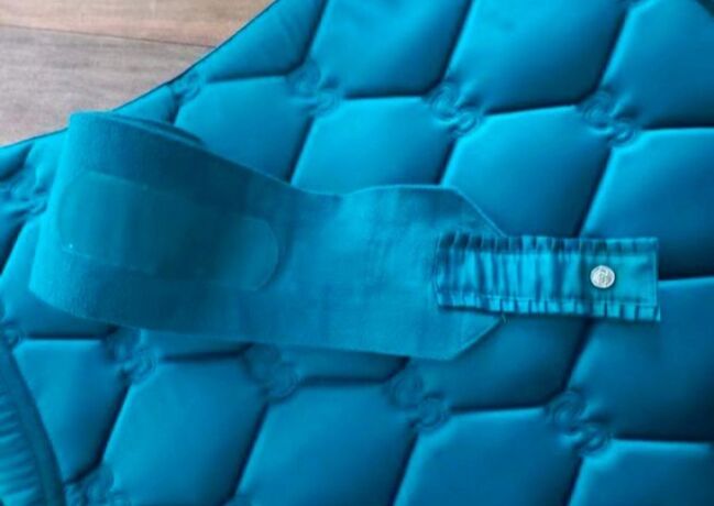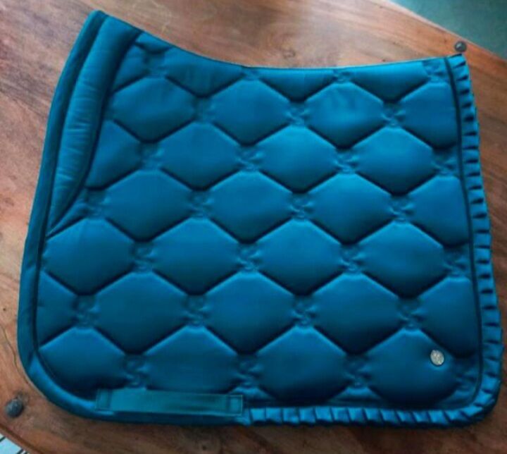 Set, bestehend aus Dressurschabracke WB und 4er-Satz Fleecebandagen WB, der Marke PS of Sweden, Modell/Serie Ruffle. Farbe: Petrol Blue.