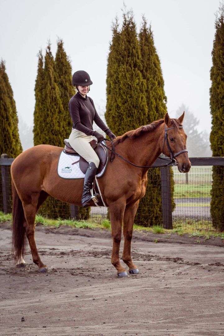 möglicherweise ein geeignetes Englisch-Lehrpferd als Einstieg für stärkere Reiter Trotz all ihrer großartigen Persönlichkeitsmerkmale ist sie immer noch ein Vollblüter. Sie gewöhnt sich nur langsam an neue Situationen. Ihr Reiter muss in der Lage sein, die Körpersprache des Pferdes zu lesen und entsprechend zu reagieren. Davon abgesehen habe ich einer 9-Jährigen beigebracht, wie man sie an der Longe reitet, und meine 12-jährige Nichte, die Anfängerin ist, hat sie ein wenig geritten.