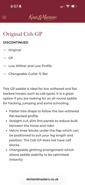 16,5" Kent & Masters Original Cob GP Sattel in braun Gebraucht, aber in tadellosem Zustand, nur zu verkaufen, da meine Stute in Rente geht Wurde immer mit einer Decke aufbewahrt und benutzt, keine Flecken oder Mängel, 6 Monate von einem Sattler überprüft Hat derzeit ein breites/extra breites Kopfeisen, aber ich habe die extra breiten und extra breiten/extra extra breiten S-Kopfeisen, die ich gegen Aufpreis schicken kann