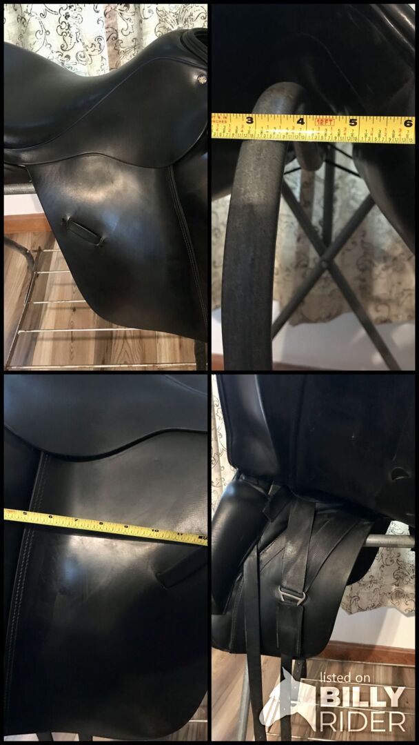18" Detente Isis. Breite Baum ist 6 "passt ein bisschen mehr in Richtung einer großzügigen Medium breit. Klappen sind 16,5" lang. Offener Sitz mit viel Platz für Ihre Sitzknochen. Der Sattel ist schwarz mit blauen Paspeln, die Unterseiten sind verblasst und sehen braun aus. Wolle geflockt. Es gibt zwei kleine Flecken auf der Unterseite einer Klappe, die repariert werden könnten, aber keinen Einfluss auf die Verwendung. Gekauft gebraucht von Pelham Sattlerei Januar 2023, mein Pferd war fett aus der Arbeit und dieser Sattel ist jetzt zu breit für ihn. Bezahlte $1800 für sie, vernünftige Angebote.