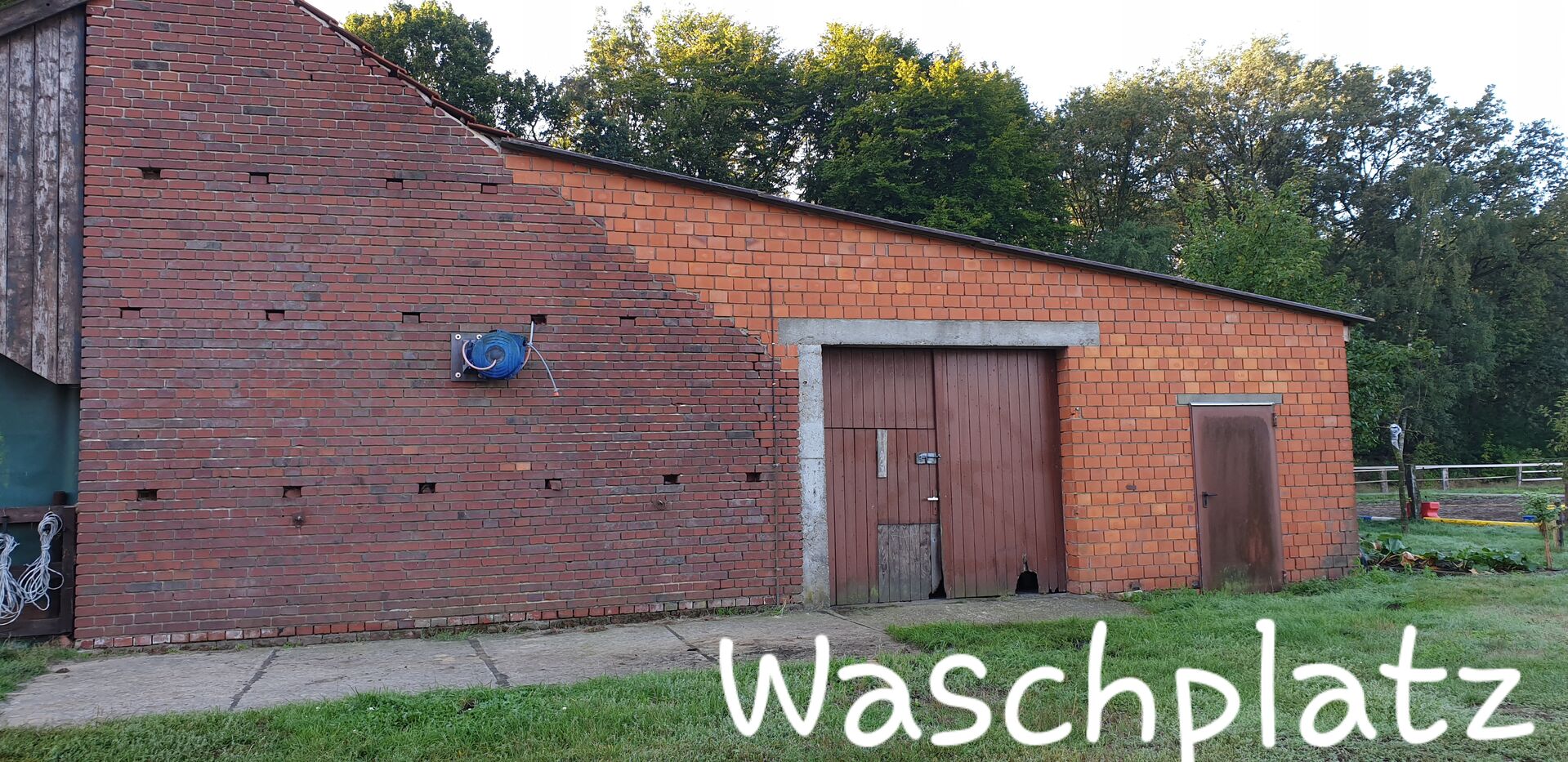 Wir haben einen beleuchteten Reitplatz und Roundpen, einen Waschplatz, ein Ausreitgelände, eine Toilette und ein Wohnwagen als Reiterstübchen.