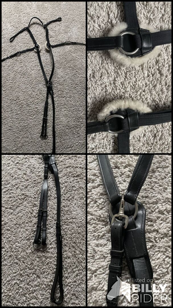 Zum Verkauf steht ein schwarzes 5-Punkt Vorderzeug in der Größe Full. Es wurde noch nie benutzt, ist also in einem einwandfreien Zustand! Die Martingalgabel ist abnehmbar und längenverstellbar. Der Neupreis lag bei 90€.