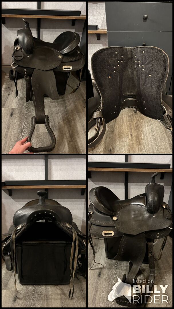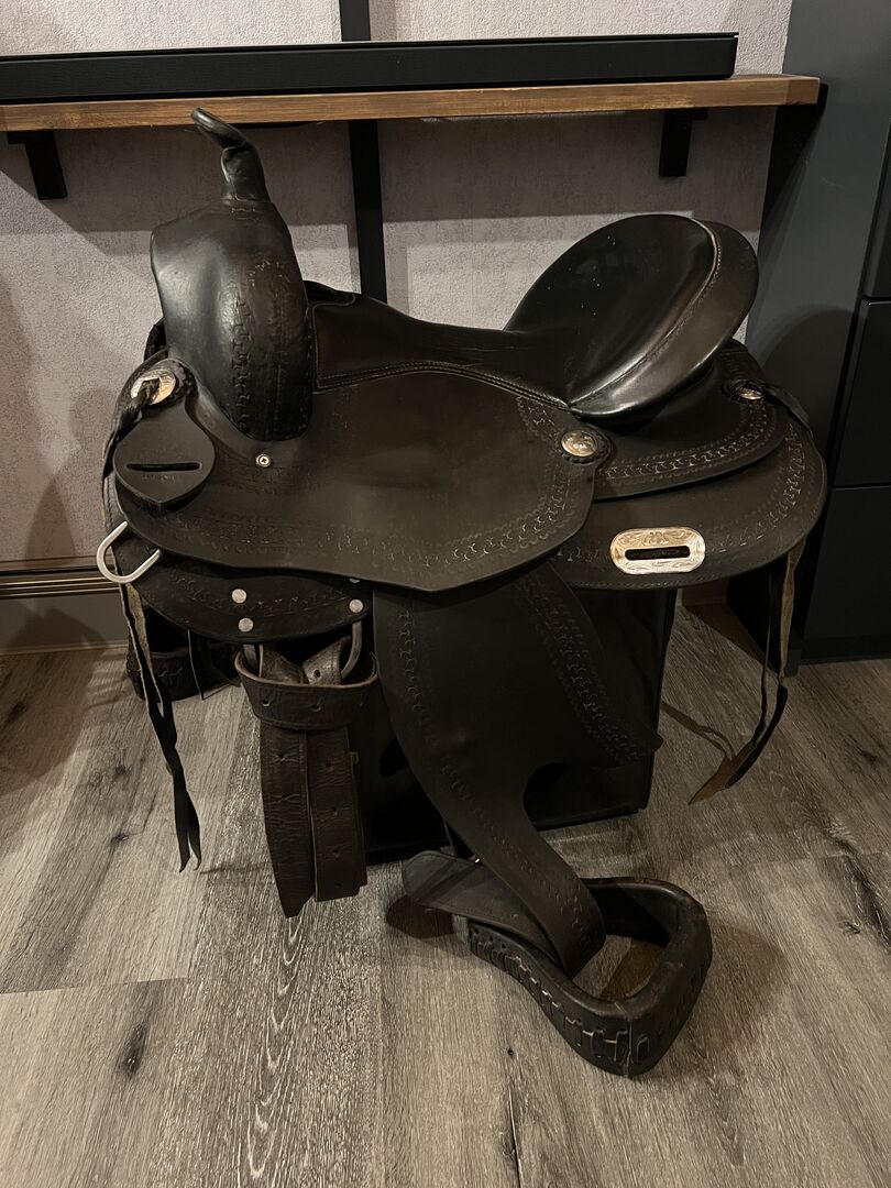 Westernsattel der Marke A&M Reitsport. Ich habe ihn selbst vor kurzem erst hier erworben, leider passt aber der Fork Winkel leider nicht für mein Pferd und die Fender sind für mich zu kurz. Der Sattel eignet sich eher für kleinere Reiter bzw normal große Reiter (ich bin 1,89m groß und daher sind meine Beine viel zu lang für die Fender).