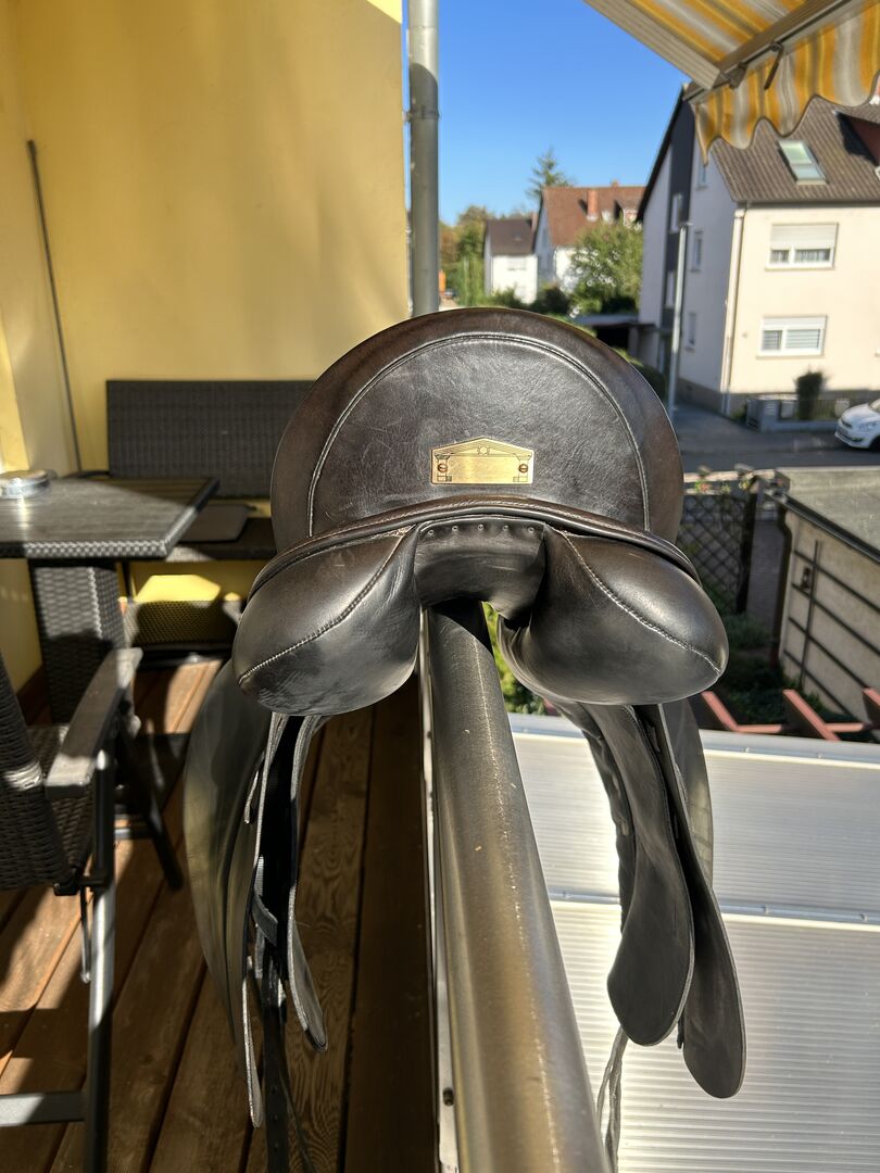 Ich verkaufe hier einen sehr gut erhaltenen und top gepflegten Albion Europa SLK in 17,5 Zoll. Der Sattel hat das HH (high Head) Kopfeisen für Pferde mit viel Wiederrist, er ist auch super für Pferde mit Hohen Wiederrist und geraden Rücken geeignet durch seine HH Kammer und seine hohe Polsterung an den Kissen hinten. Der Sattel ist von Ende 2013 und aus zweiter Hand wurde immer super gepflegt und kann warm vom Sattler verändert werden. Bei den Sattelriemen sind Löcher etwas ausgeleiert aber das stört nicht und man trotzdem noch normal Gurten. Der Sattel hat 3 Gurtstrippen und dann so auch mittig und hinten gegurtet werden das nicht so viel Druck auf den trapezmuskel kommt. Der Sattel wurde Anfang März komplett neu gepolstert und neue Filzeinlagen rein gemacht das kein Knötchen oder sonstiges am Sattel sind gerade für Pferde die sehr sehr empfindlich im Rücken sind. Der Sattel verfügt über den extra Tiefen Sitz der einen sehr nah an den Pferderücken setzt.