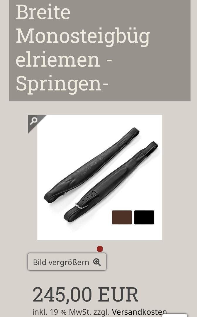Dazu biete ich Monosteigbügelriemen in gleicher Farbe in Pinerolo Leder an.