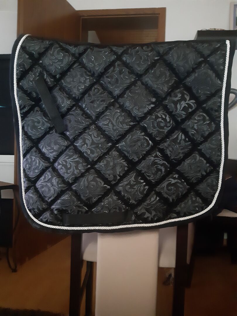 Schwarze Dressurschabracke lag nicht lange aufm Pferd. Gewaschen aber noch par Haare drauf, und etwas verblasst am Rand