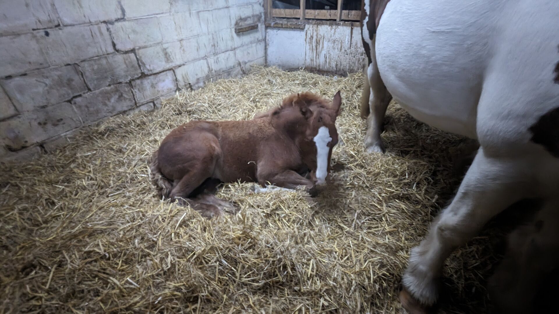 Unser hübsches rot-weißes Stutfohlen hat mit unserem schönen Palomino-Hengst ein wunderschönes Fuchsstutfohlen gezeugt, das die hübsche Chispa hervorgebracht hat.