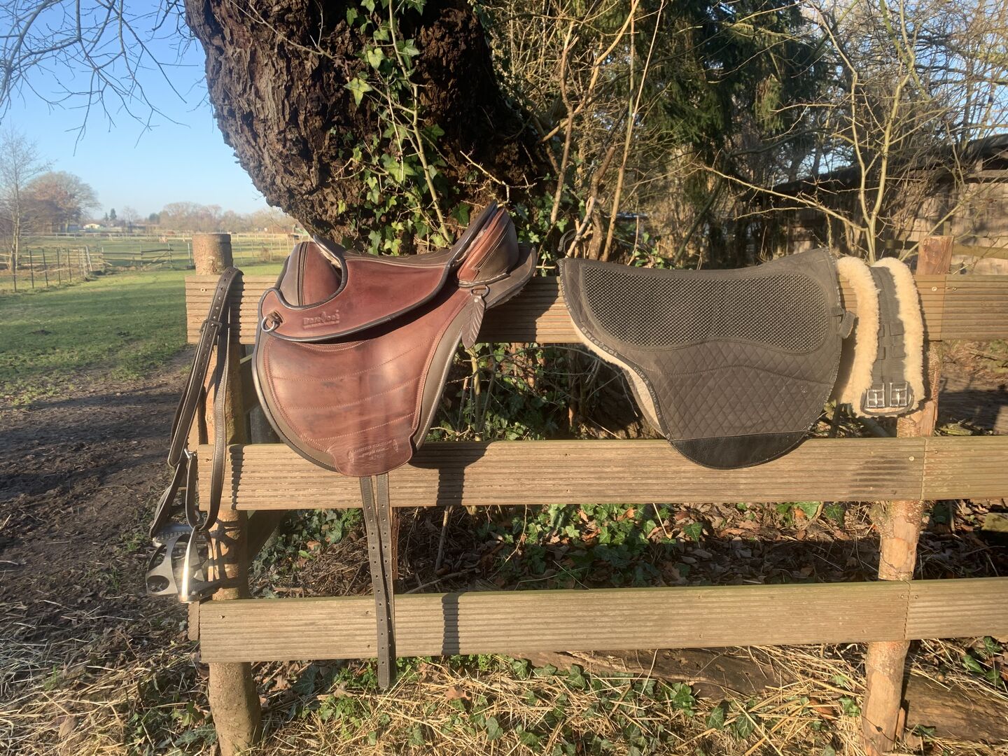 Der Sattel ist gebraucht, aber sehr gepflegt und voll funktionsfähig. Das Leder ist weich und gut erhalten, mit normalen Gebrauchsspuren. Alle Reisverschlüsse sind intakt. Der Zwiesel bestehe hier aus Stoff.