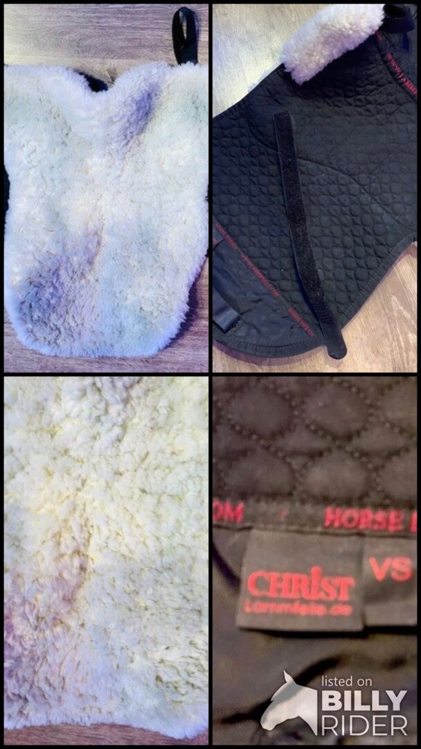 Ich biete eine schöne Satteldecke mit Lammfell im Sitzbereich von Christ an, Modell Champ. Das Fell ist noch schön fluffig und die Klettverschlüsse sind sauber und voll funktionsfähig. Die Satteldecke ist frisch gewaschen und kommt aus einem Nichtraucherhaushalt. Ein hoch geschnittener Widerrist ermöglichen besten Halt und Anpassung an die Rückenform, vorne wird das Lammfell bis auf die Oberseite herumgezogen und dient als Sattelanlage. Maschinenwaschbar mit einem Lammfellwaschmittel und trocknerbeständig. Ich verkaufe mein Zubehör, weil ich meine Stute in Rente geschickt habe.