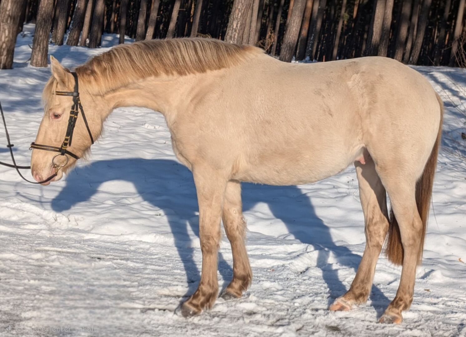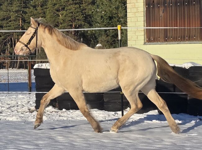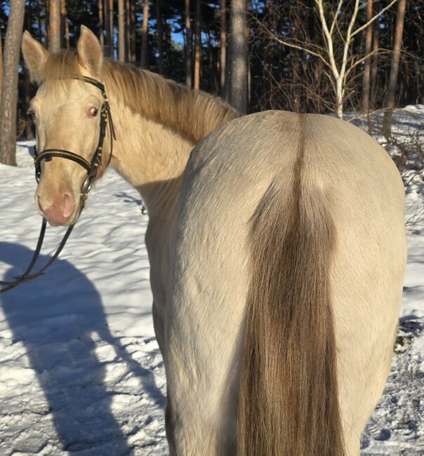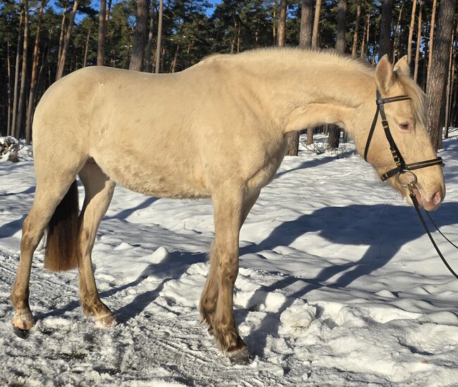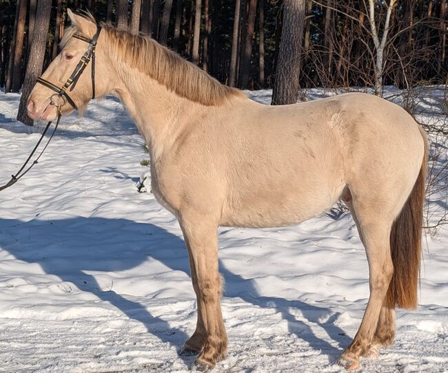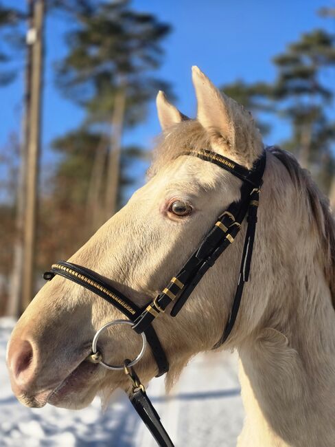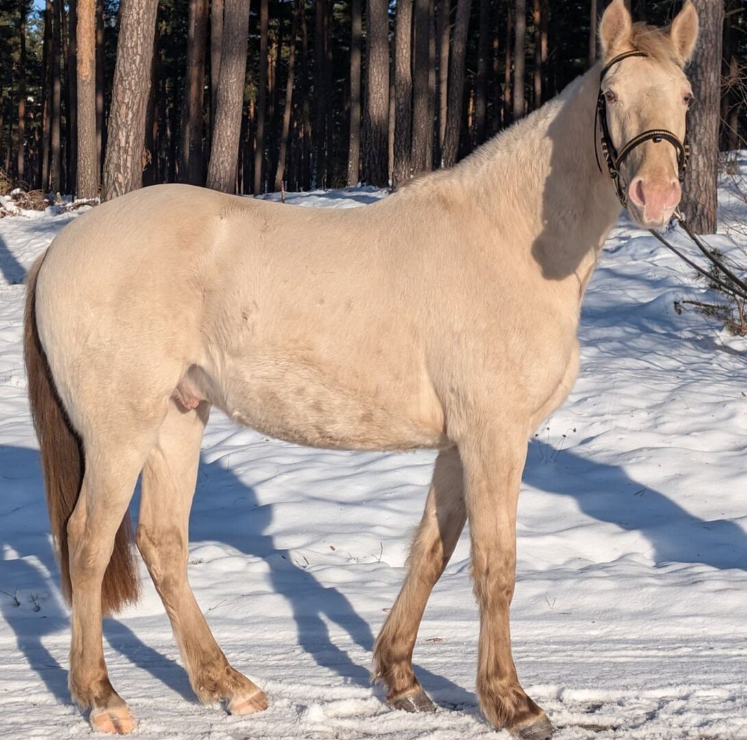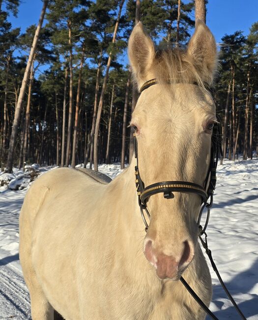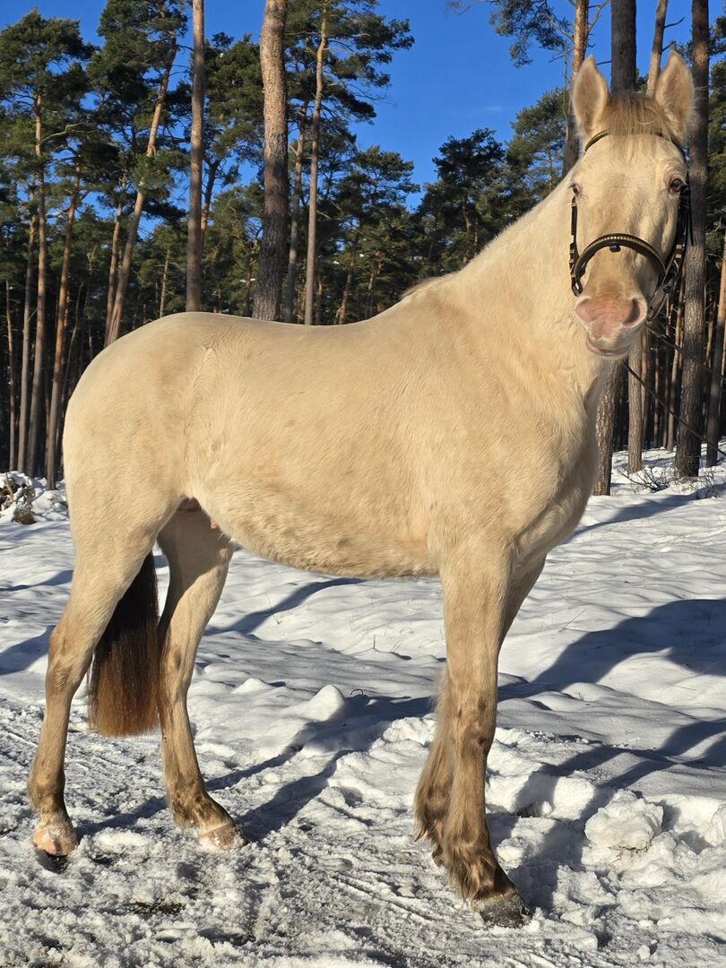 Mein junger Classic Champagner farbender Hengst Voodoo Prinz steht dieses Jahr erstmalig Fremdstuten im Natursprung auf der Weide oder an der Hand zur Verfügung. Er ist aktuell 1,44m groß. Seine Mutter ist ein PRE und sein Vater ein Paint Horse. Charakterlich ist er sehr verspielt, neugirig und menschenbezogen. Er lässt sich überall anfassen und geht auch alleine ins Gelände. Zuhause steht er mit Stuten oder einem Wallach zusammen. Aktuell deckt er ohne Schein.