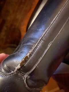 Der linke Stiefel hat einen Lederspalt entlang der Naht (siehe Detailfoto). Kann von einem professionellen Schuster repariert werden und hat einen entsprechenden Preis.