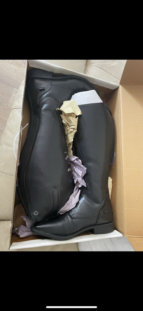 BNIB Atemberaubende Black Field Stiefel Größe 7 ( 41) Weite Wade bis 18" (schmaler Stretcheinsatz am Reißverschluss)