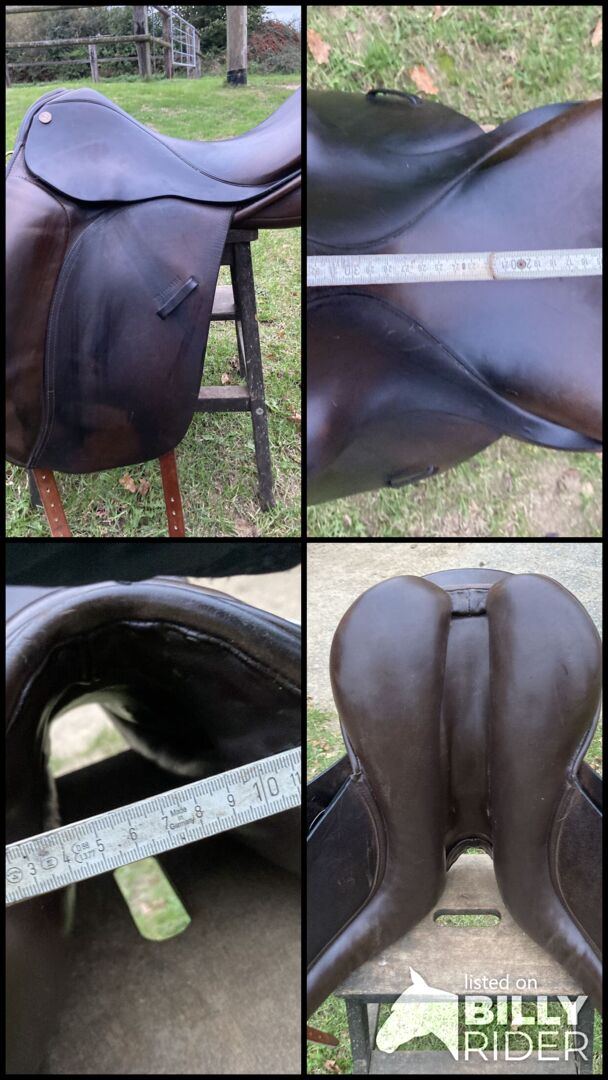 Biete einen Euroriding Diamant Dressursattel mit rotem Punkt , in einem sehr schönen dunkelbraun, 16,5 fit 3. der Sattel lag auf einem Endmass Pony mit etwas Schwung im Rücken.
