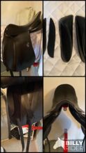 Dressursattel mit angenehmen Sitz, zwei wechselbare Klettpauschen in unterschiedlicher Größe zur Anpassung ans Reiterbein sind incl.,