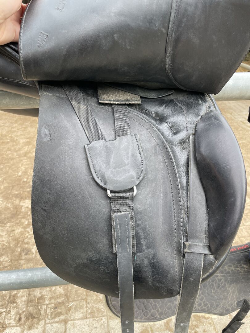 Dressursattel ‚Anja Beran‘ von Passier. Er ist aus Kalbsleder gefertigt, so dass man sehr sicher auf ihm sitzt. Der Sattel lag auf einem Pferd mit hohem Widerist, die Kammerweite beträgt ca 18 cm