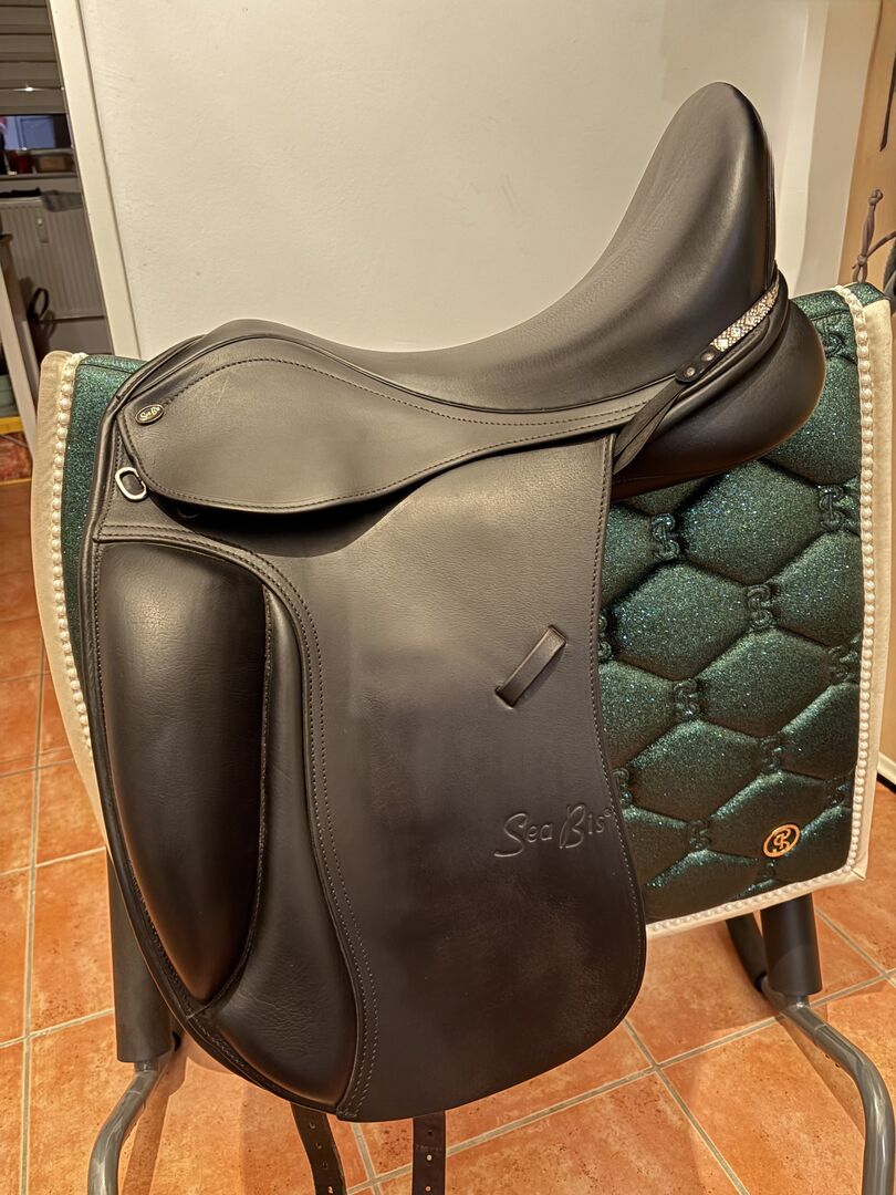 Dressursattel Seabis Vigo Pro passt perfekt auf kurze, gerade Pferderücken mit deutlich ausgeprägter Widerristpartie und einer prominenten Schulter. Durch die aufgesetzten Pauschen bietet er besonders viel Halt!