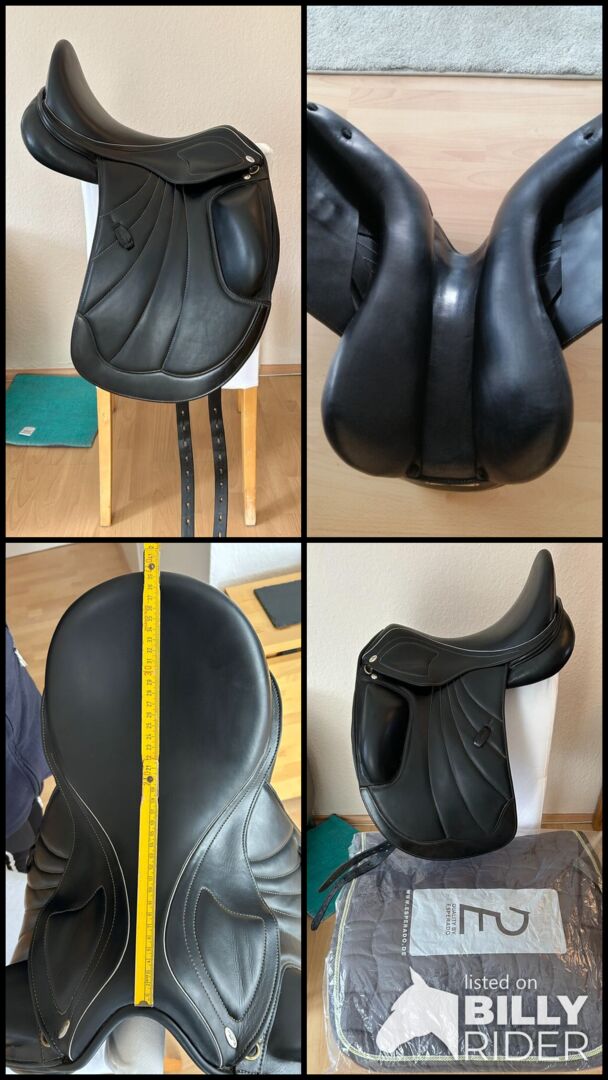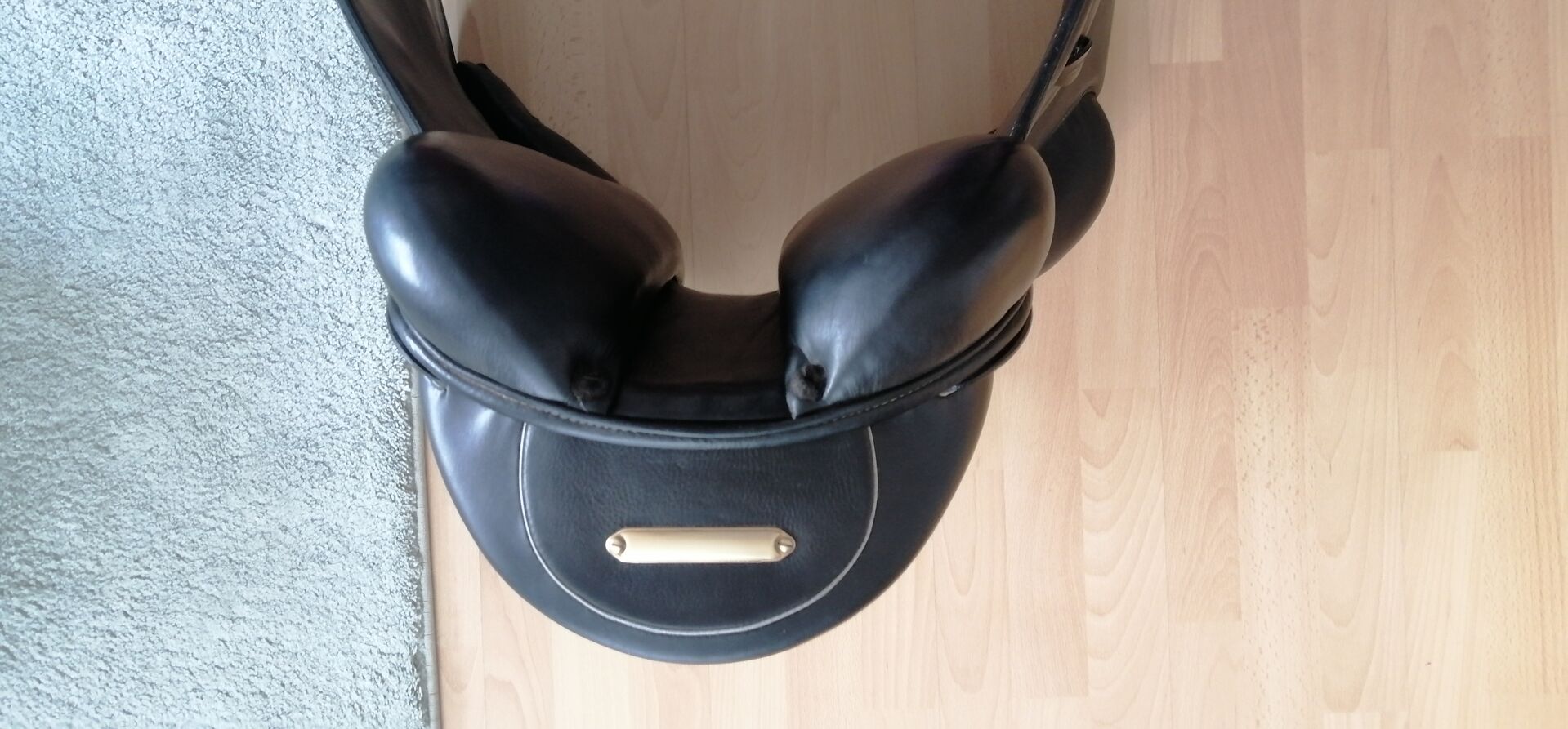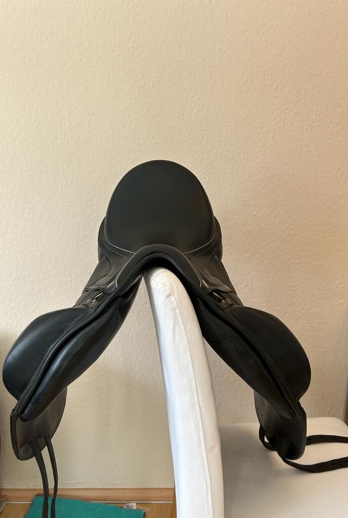 Absolutes Schmuckstück, neuwertig. Der Sattel ist super bequem, weich gepolztert und man sitzt ganz sicher darin. Die kurzen Pauschen sind super, sie geben einen sichern Halt, aber mit optimaler Beinfreiheit! Für große und kleine Reiter geeignet! Er ist außerdem ein Hinkucker, sehr elegant mit den weißen Nähten. Der Sattel hat Monosattelblätter, daher sitzt man sehr nah am Pferd, für feine Hilfen. Der Sattel Pass wird mitgeliefert. Eine nagelneue Schabracke gibt es gratis dazu und den roten Original Sattelschohner incl. der Versandkosten.