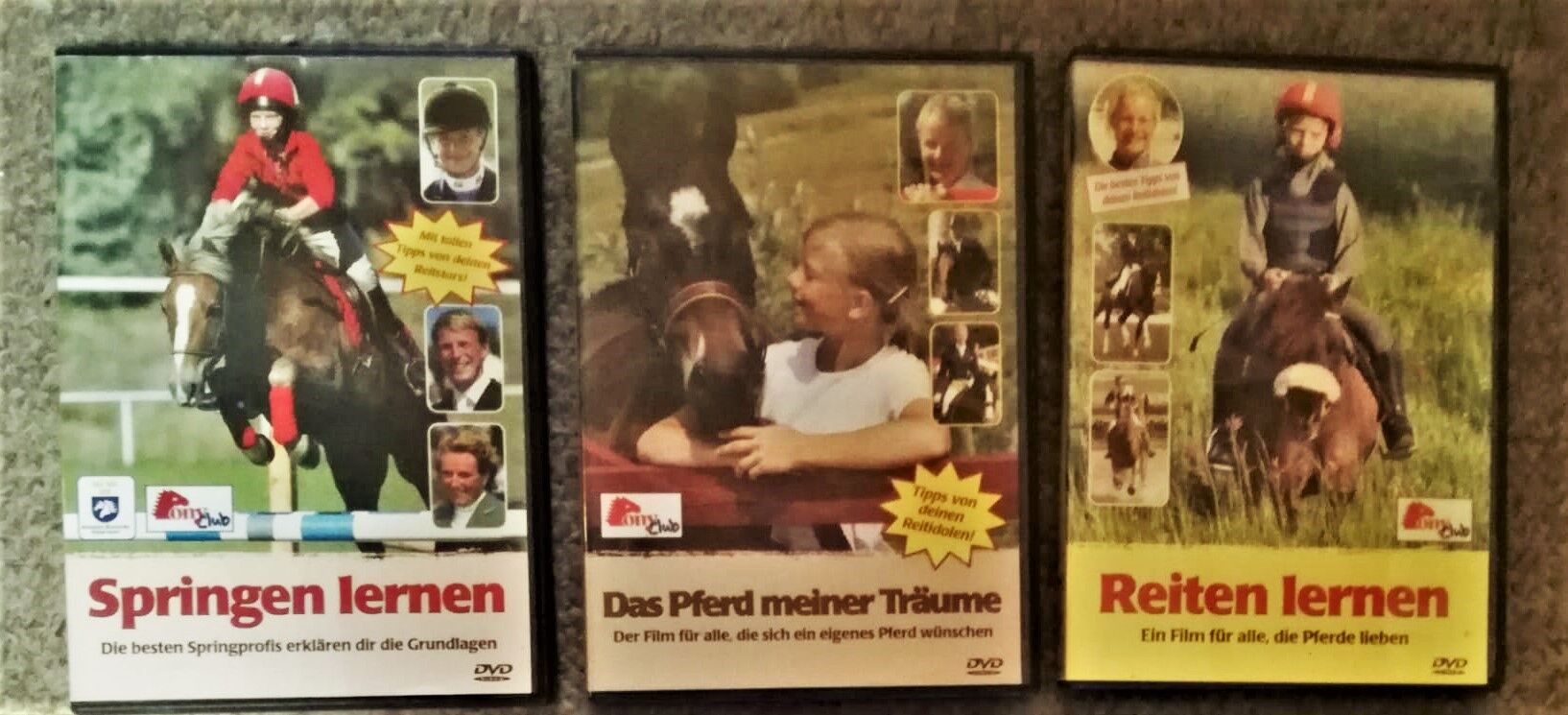 Verkaufe 3 DVDs mit theoretischem Lehrmaterial zum Thema Reiten, Springen und erstes eigenes Pferd. Perfekt für Kinder oder Anfänger im Reitsport.