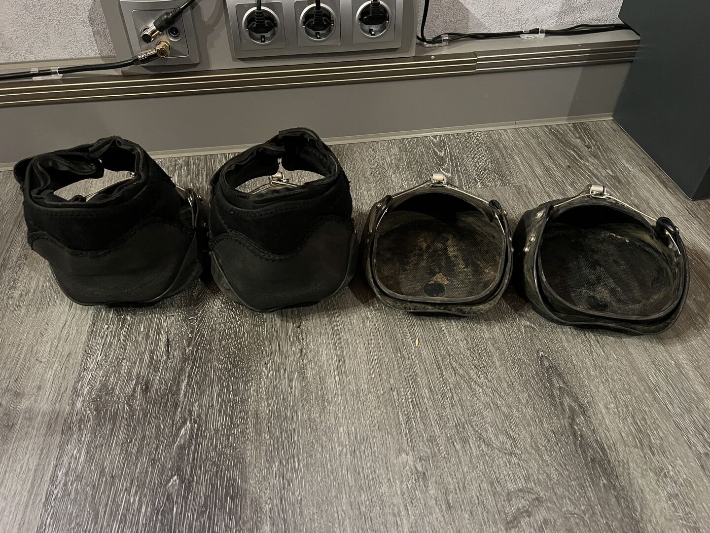Verkaufe hier gebrauchte aber in gutem Zustand befindliche Hufschuhe von EasyBoot. Es handelt sich hierbei um das Modell Epic. Die Schuhe mit Gaiter sind Größe 4 und die ohne sind Größe 5. Die in Größe 5 besitzen Krallen an den Trachtenriemen, welche aber ausgetauscht werden können. Mit verkauft werden noch Ersatz Gaiter in Größe 4, diese sind auch in einem gebrauchten Zustand aber als Ersatz noch gut zu nutzen. Ebenso dabei sind noch diverse Schrauben, Trachtenriemen in Größe 4 und ein Ersatzdraht ebenfalls in Größe 4. Die Schrauben, Trachtenriemen und Ersatzdraht sind nicht auf den Fotos abgebildet, sind aber definitiv dabei. Meinem Pferd passen die Schuhe nicht richtig, da er kaum Trachten mehr hat (leider abgelaufen). Die Schuhe eigenen sich eher für Pferde mit Tracht.
