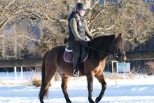Huzule Wallach 6j. Dunkelbraunfalbe Stm. 143cm. rahmiger, kompakter, hübscher Typ mit guter Rittigkeit, geritten und gefahren, sehr willig, mutig und unkompliziert beim Reiten, gehorsam im Umgang; Ein Traumpartner für die Zukunft, der seine Bezugspersonen sucht!schmiede u verladefromm, in der Herde verträglich, für Offenstall geeignet