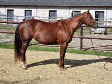 Electra Chic - eine bildschöne, kompakte und korrekt gebaute Quarter Horse Stute, geboren 2011, mit einem Stockmaß von ca. 150 cm. Sie überzeugt nicht nur durch ihr äußeres Erscheinungsbild, sondern vor allem durch ihren hervorragenden Charakter: menschenbezogen, freundlich, aufgeschlossen und respektvoll im Umgang. Electra zeigt sich sehr sozial im Herdenverband, kennt Offenstallhaltung in der Stutengruppe ebenso wie Boxenhaltung und ist absolut unkompliziert - sowohl im täglichen Handling als auch beim Schmied oder Verladen. Sie ist gesund, unbeschlagen und hat sehr gute Manieren. Unterm Reiter ist Electra brav, angenehm zu reiten und fein an den Hilfen. Sie hat eine solide Westernausbildung genossen, insbesondere im Reining, und bringt viel Erfahrung mit. Aufgrund ihres Einsatzes in der Zucht wurde sie in den letzten sechs Jahren nur noch freizeitmäßig geritten und müsste daher wieder antrainiert werden - bringt aber alles mit, um schnell wieder an alte Leistungen anzuknüpfen. Als Zuchtstute ist Electra Chic ein echtes Juwel. Sie stammt aus erstklassiger Reining-Abstammung (Jacs Electric Spark Tochter/Smart Chic Olena Enkelin mütterlicherseits) und hat bereits drei tolle Fohlen hervorgebracht. Sie ist eine hervorragende Mutter, bei der Trächtigkeit und Geburten stets problemlos verliefen. Sie wurde sowohl mit Tiefgefriersperma als auch mit Natursprung und Kühlsamen erfolgreich tragend. Für das Jahr 2026 ist sie nicht tragend und steht somit direkt wieder für den nächsten Zuchteinsatz bereit. Genetisch ist sie in der Lage, schwarze Fohlen zu bringen. Auch sportlich hat Electra einiges vorzuweisen: Sie ist AQHA Point Earner in Reining, NRHA Regio Futurity Champion der 3-jährigen Pferde. 2015 erreichte sie den Reserve Champion Titel bei der European Championship Reining in Kreuth. Ihre sportliche Karriere und ihr Pedigree machen sie besonders interessant für Züchter*innen, die auf Leistung und Charakter Wert legen. Electra Chic wird ausschließlich in allerbeste, liebevolle Hände abgegeben, die ihren Wert als Reit- und Zuchtpferd zu schätzen wissen und ihr ein passendes, artgerechtes Zuhause bieten.