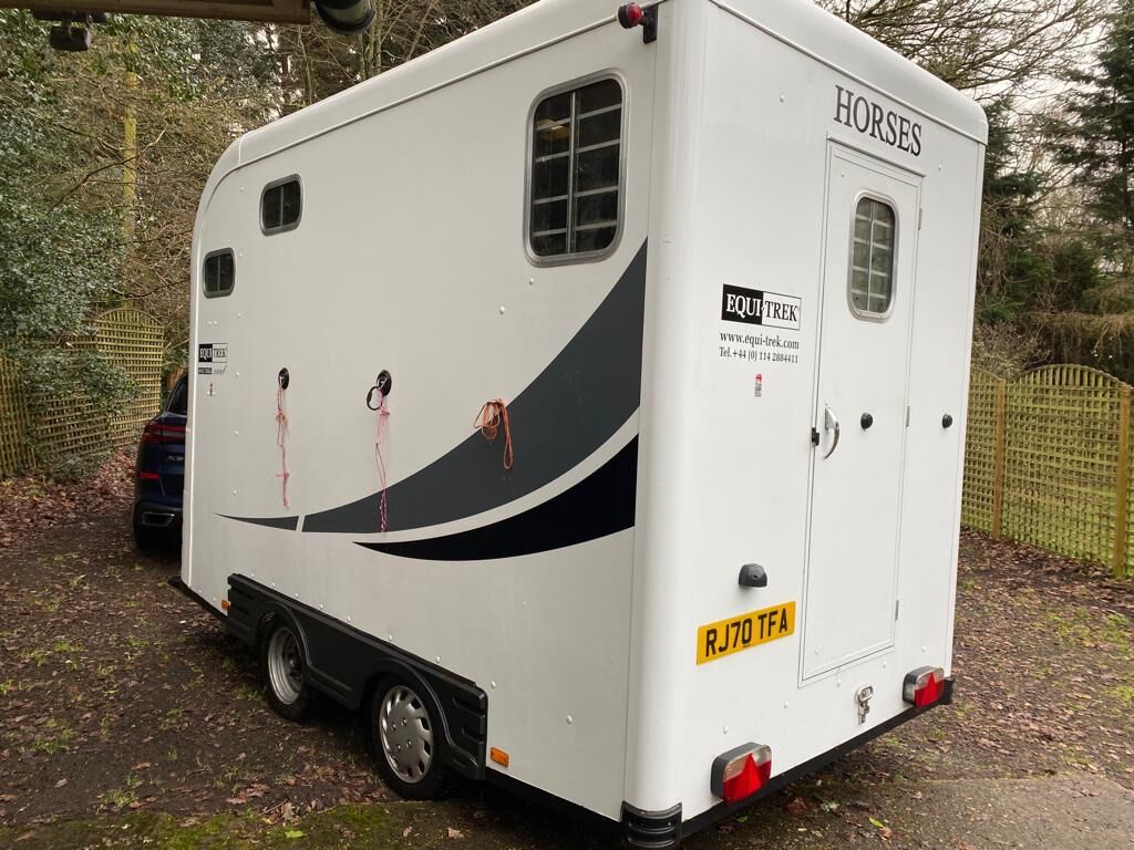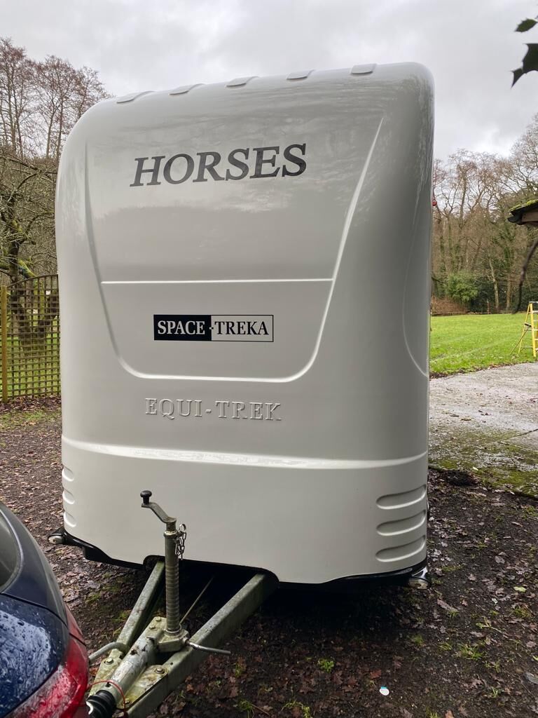 Ausgezeichneter Zustand: "Der Space-Treka L ist ein brillanter, in sich geschlossener, nach hinten gerichteter Pferdeanhänger, der so konzipiert ist, dass er Ihre gesamte Ausrüstung und zwei größere Pferde transportieren kann, dabei aber kompakt und leicht zu ziehen ist.der Space-Treka L verfügt über einen separaten Sattelbereich mit Sattel- und Zaumzeugständer, Kleiderhaken und ausreichend Platz für Ihre gesamte Ausrüstung, ideal für die Aufbewahrung und das Umziehen.der Space-Treka L verfügt außerdem über Sicherheitsrampen für ein sichereres Beladen und eine nach hinten gerichtete Fahrt für den Komfort Ihres Pferdes. Die Rampe auf der anderen Seite des Anhängers verhindert, dass Sie zwischen Pferd und Anhängerwand eingeklemmt werden, wenn Sie von der nahen Seite aus vorgehen, und verringert die Gefahr, dass Sie die Rampe aufgrund eines Hindernisses, z. B. unter einer Brücke oder an einer hohen Böschung, nicht absetzen können. Außerdem verhindert die niedrige, breite Seitenrampe, dass das Pferd nach dem Beladen rückwärts fliegt, was es für eine Person viel sicherer macht, ein Pferd alleine zu beladen. Darüber hinaus verfügt der Space-Treka L über einen klappbaren Brustbügel und eine Einzelradaufhängung für ein stabileres und komfortableres Fahrverhalten. Der Space-Treka L verfügt außerdem über Rundum-Fenster für Licht und Belüftung, und die Standardfarbe ist weiß, um Wärme zu reflektieren. Dieser Anhänger ist mit der zusätzlichen Flettner-Dachlüftung ausgestattet. Sehr geringe Kilometerleistung" 99% lokale Fahrten. Ursprünglich für ein Pferd gekauft, das Schwierigkeiten hat, in einem vorwärtsgerichteten Anhänger aufzustehen, und er reist hervorragend in diesem Anhänger. Viel Platz, um alles in der Sattelkammer zu verstauen - wir haben ihn zum PC-Camp mitgenommen und es gelang uns, 2 Pferde, 2 Schubkarren usw., ein Zelt, 2 Einzelmatratzen, einen Futtertrog, Zaumzeug, Pflegesets usw., alles, was meine Töchter für ein einwöchiges Camp brauchten, unterzubringen! Es ist in einem sehr guten Zustand, die Elektrik wurde gerade überprüft und ein neues Sicherheitskabel eingebaut (22. Dezember). Im März 2022 gewartet. Kommt mit 2 Schlüsselsätzen, Jockey-Schloss, Original-Kauf-Informationen.