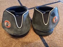 Sehr gut gepflegte, ein Jahr alte und kaum benützte Hufschuhe in Grösse 14. Sie halten sowohl beim Dressurreiten, als auch im Gelände und sogar kleine Hüpfer sind damit möglich.Keine Behinderung fürs Pferd.Einfaches Anlegen am Huf und kein Reiben und Scheuern. Neupreis 210 Euro.