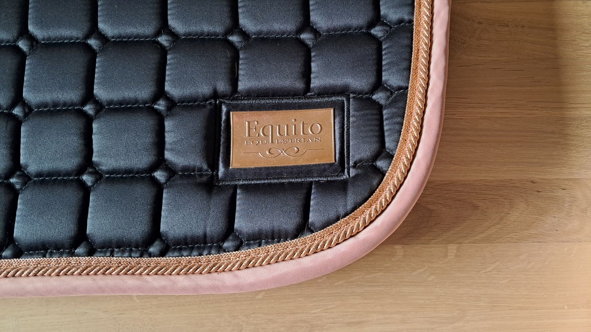 schwarze Schabracke mit rosegoldenem Zierrand aus Kordeln, feines Absteppmuster mit passenden Bandagen und Fliegenhaube. Alles selten benutzt und sehr gepflegt. Bei Versand zzgl Versandkosten. Da ich den Reitsport aufgegeben habe, habe ich verschiedenste Sachen abgegeben. Schaut auch gerne in meine anderen Anzeigen.