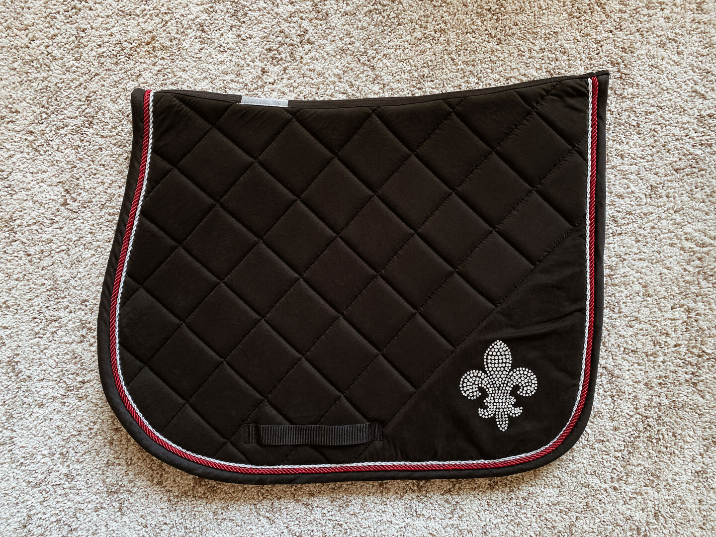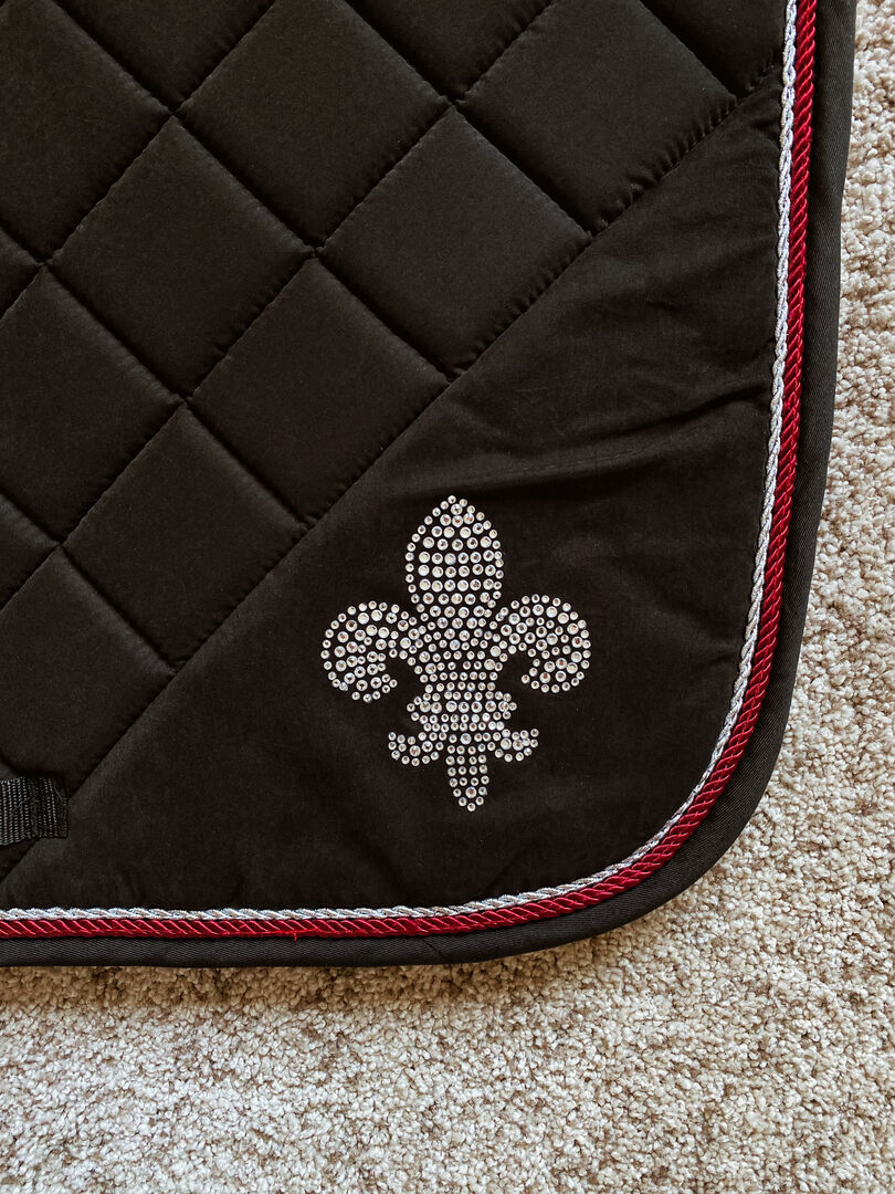 Verkaufe nagelneue und sehr schöne VS Schabracke in schwarz, abgesetzt mit Bordeaux und Silver. Ein absoluter Hingucker dank Fleur de Lis aus Swarovski Steinen! 🖤