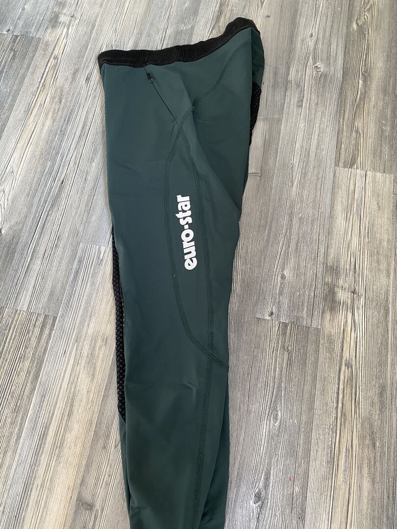 Eurostar Reithose in der Farbe Grün zu verkaufen. Sie wurde zweimal getragen. Ein Stück Naht ist auf der rechten Hosen Seite (Bild 3) aufgegangen. Sonst ist sie in einem sehr guten Zustand.