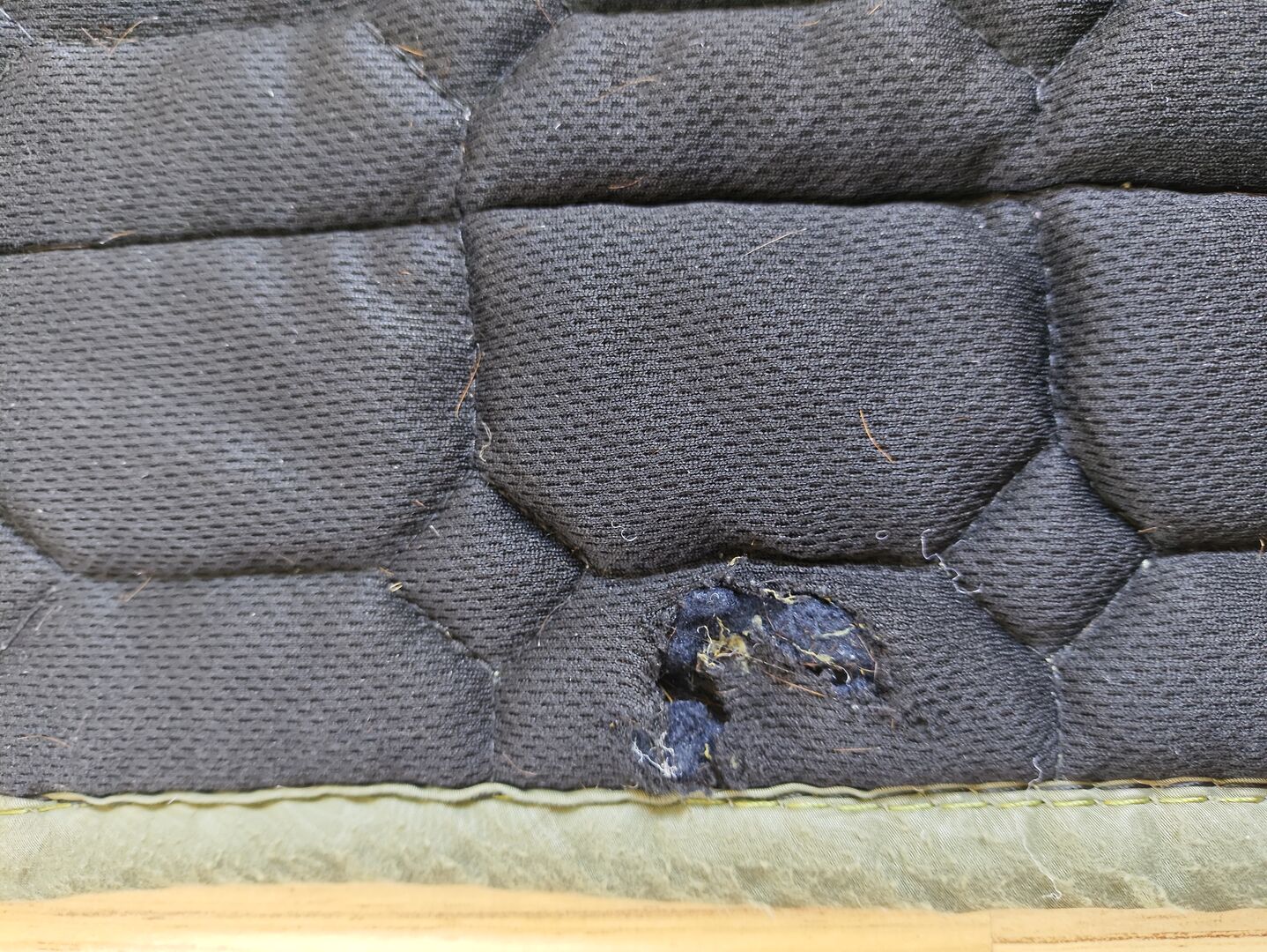 Die Schabracke hat innen ein kleines Loch, was keinerlei Einschränkung bedeutet. Die Bandagen wurden nur selten benutzt.