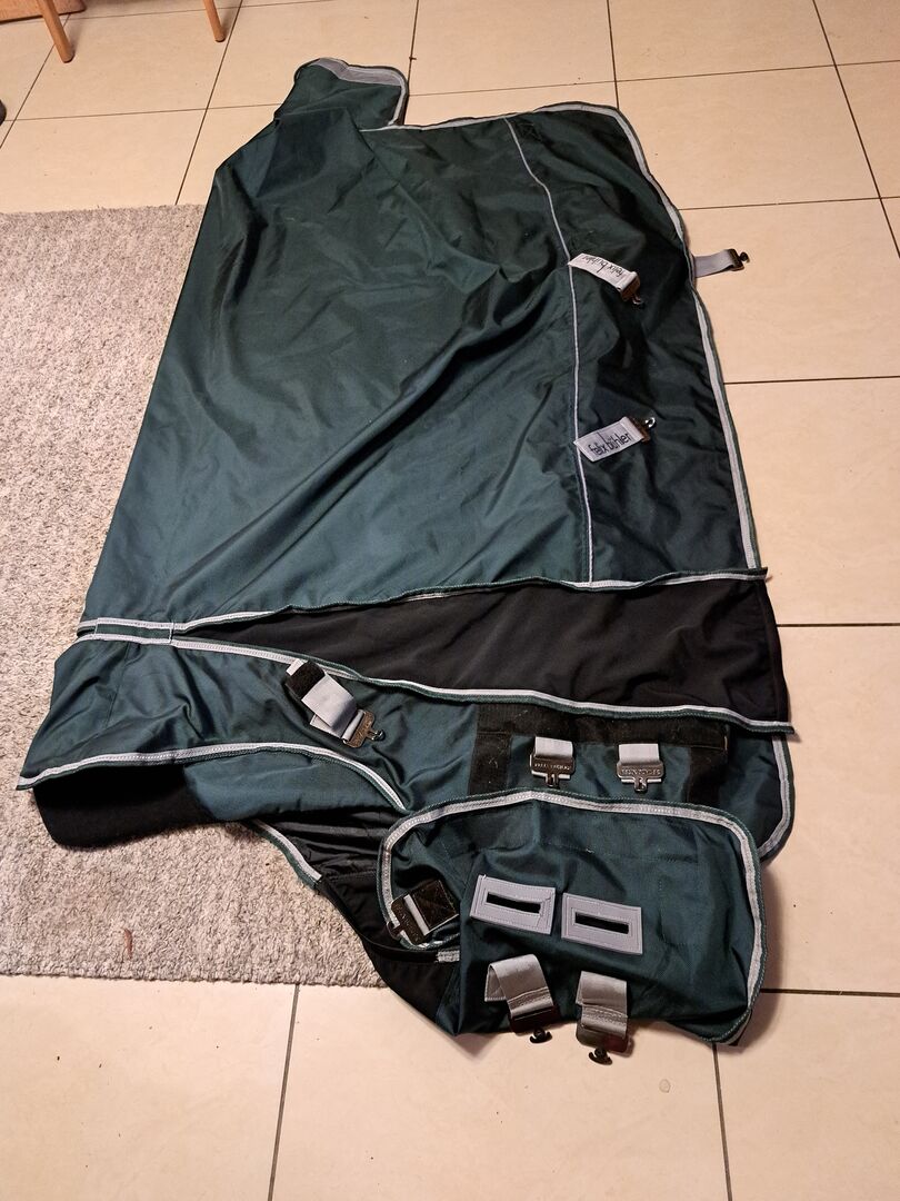 Hochwertige 50 g. Outdoordecke mit Seitlichen Verschlüsse die alle komplett abgedeckt sind damit kein hängebleiben an z.b Heunetzen möglich ist. Versand möglich.. . 1x getragen von daher neuwertig.Versand möglich