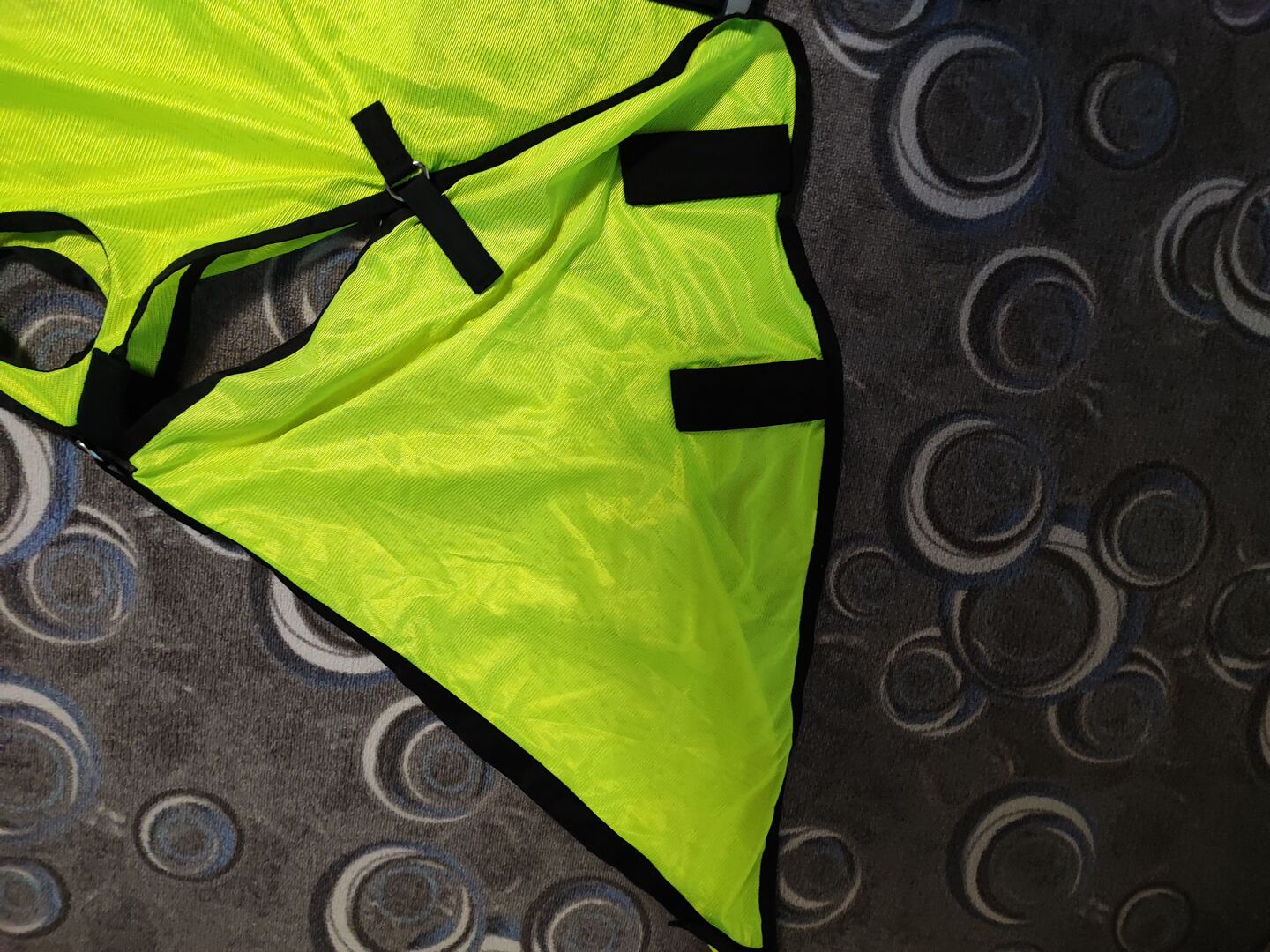 Verkaufe hier meine wenig gebrauchten Fahr Fliegendecke in neon. Meinem Tinker ist sie leider zu klein geworden ist Größe 140 cm.