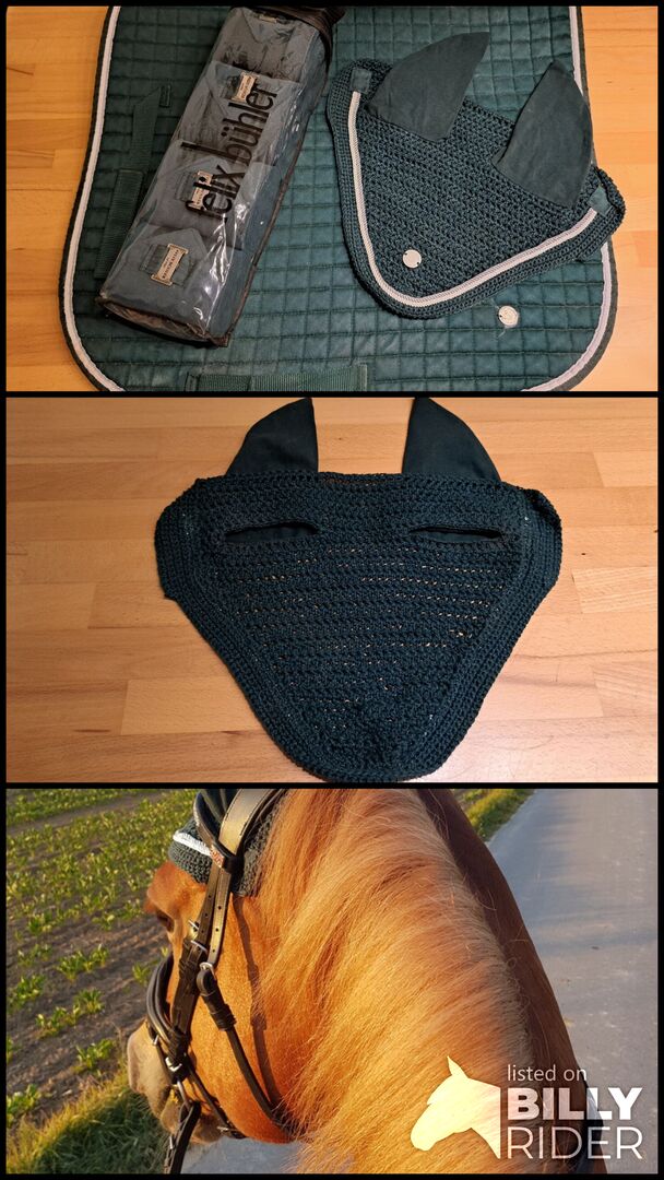 Ich biete eine Fliegenhaube von Felix Bühler in green lake in der Größe Warmblut. Die Fliegenhaube ist gebraucht, aber in einwandfreiem Zustand und frisch gewaschen.