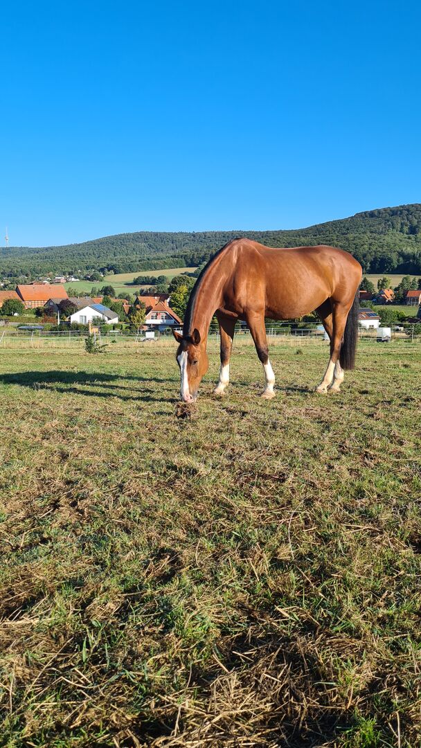 Tolles Freizeitpferd. Geht alleine und in der Gruppe ins Gelände. Wird Dressur und Springen geritten, macht auch kleine Geländesprünge. Sicher im Straßenverkehr.
