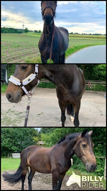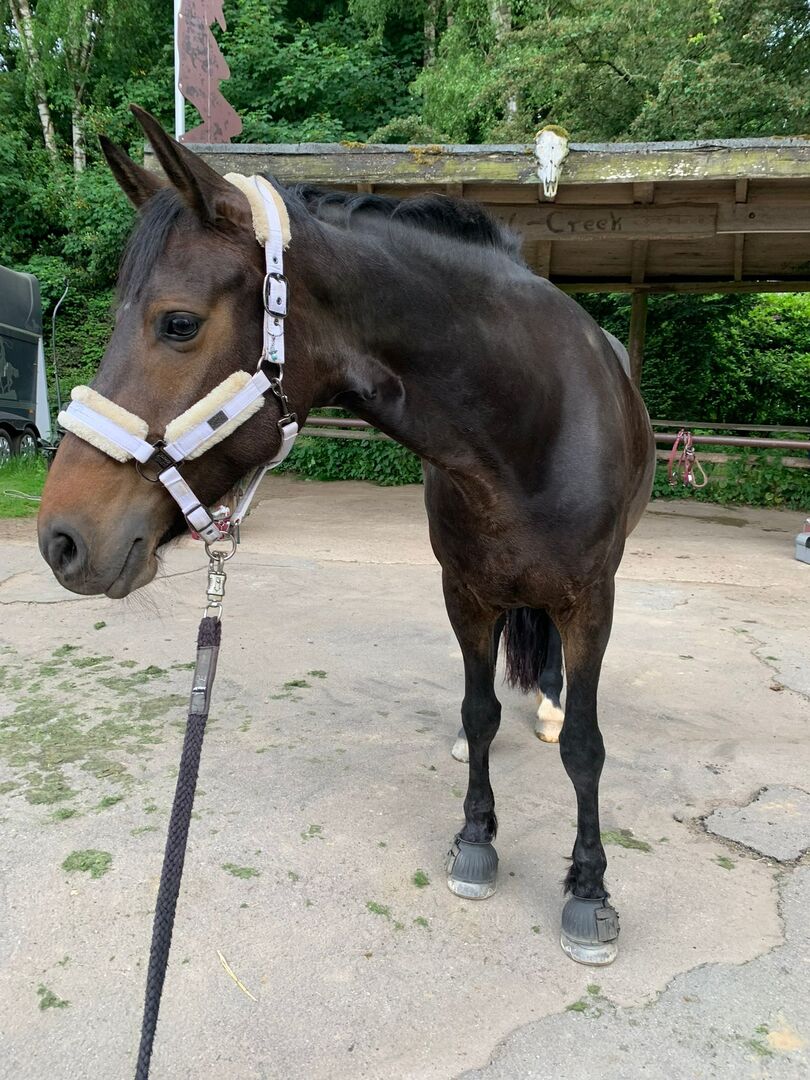 Sonstiges: - Sie kennt Hunde, Ziegen, Schafe, etc. - Sie kennt Straßenverkehr (Traktoren, Motorräder, etc.) - Sie ist schmiede- und verladefromm (Verladen tagesformabhängig 5-15 min) - Hat keine Unarten wie Steigen oder beißen - Dressur auf A Niveau - Springt gerne, bisher nicht höher als E Niveau mangels Reitererfahrung - kennt Halsring reiten