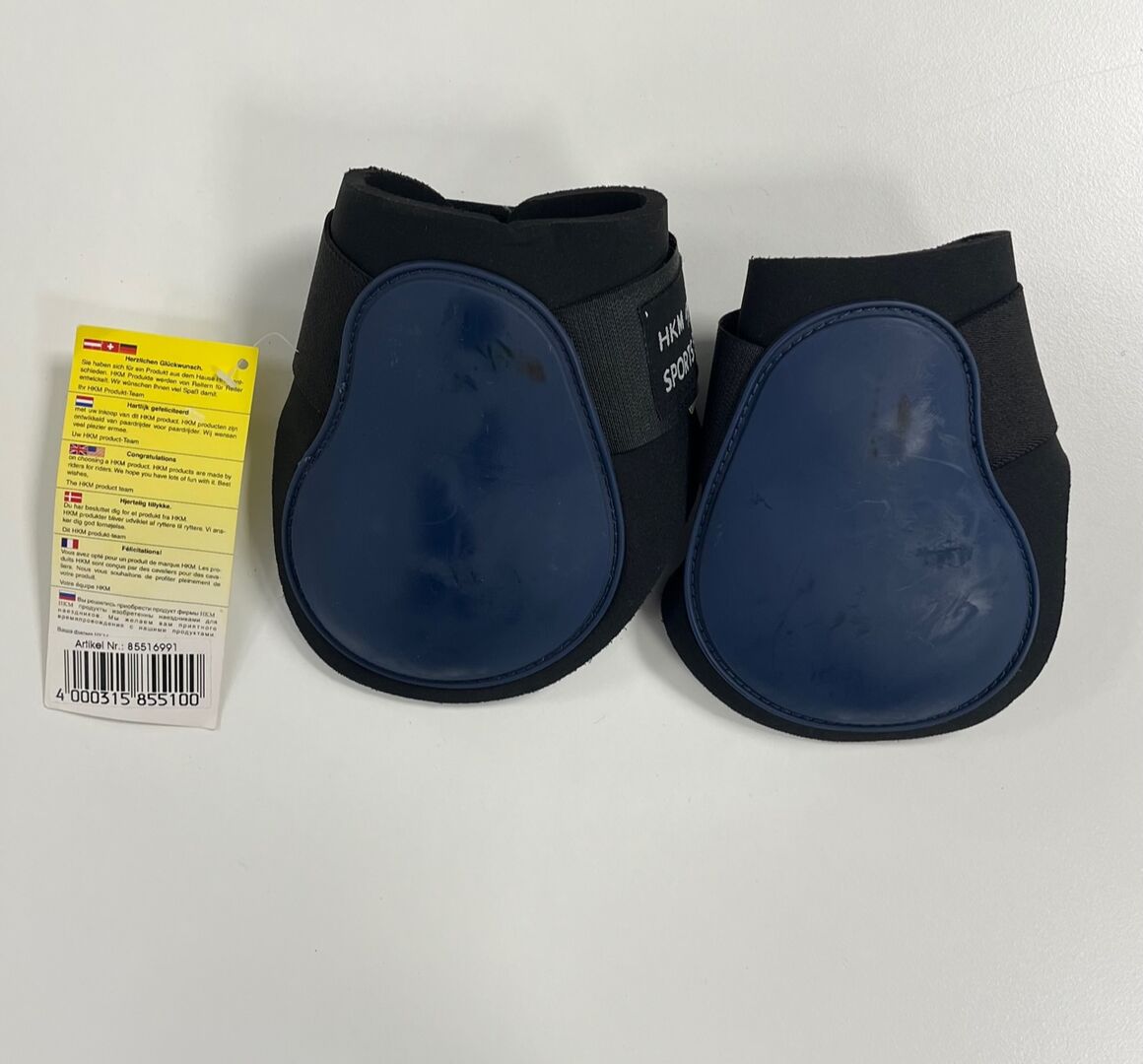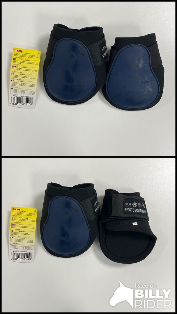 in schwarz/blau, mit praktischem Klettverschluss und weichem Neopren auf der Innenseite. Der äußere Schutz besteht aus Hartplastik.