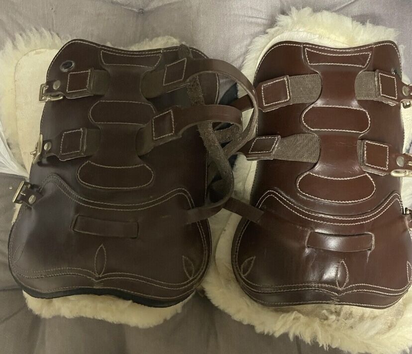 Braune Ledergamaschen in der Größe VB/Wb. Die Gamaschen sind wie neu. Das Lammfell ist abklettbar und durch „normale“ Einlagen zu tauschen. Versand gegen Übernahme möglich. Paypal vorhanden.