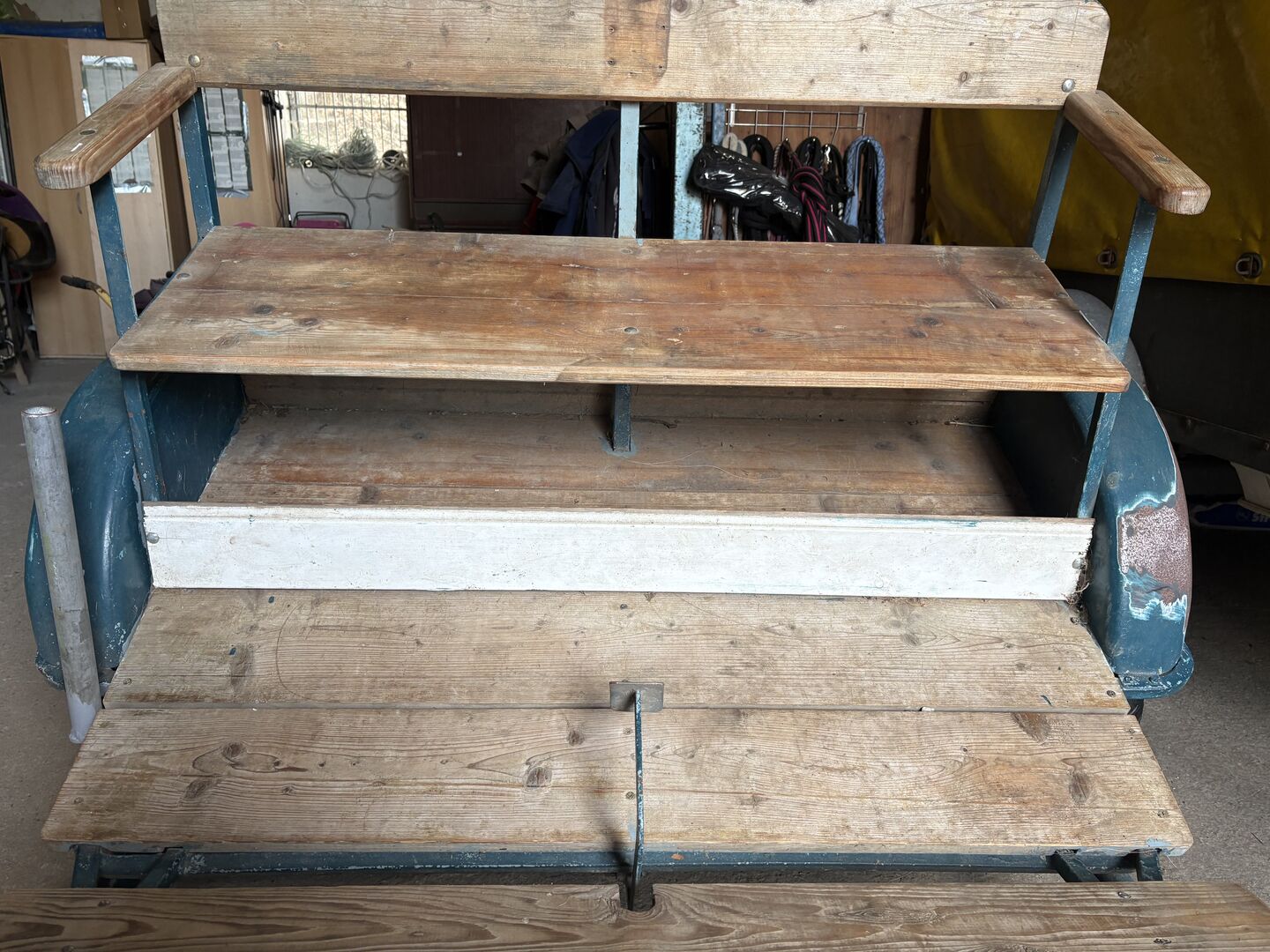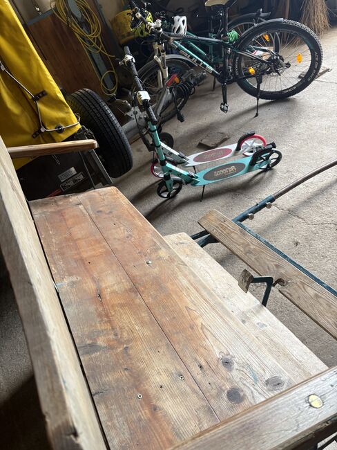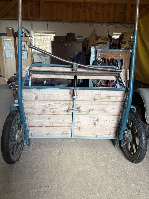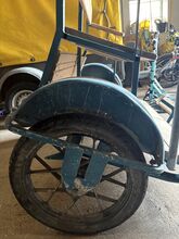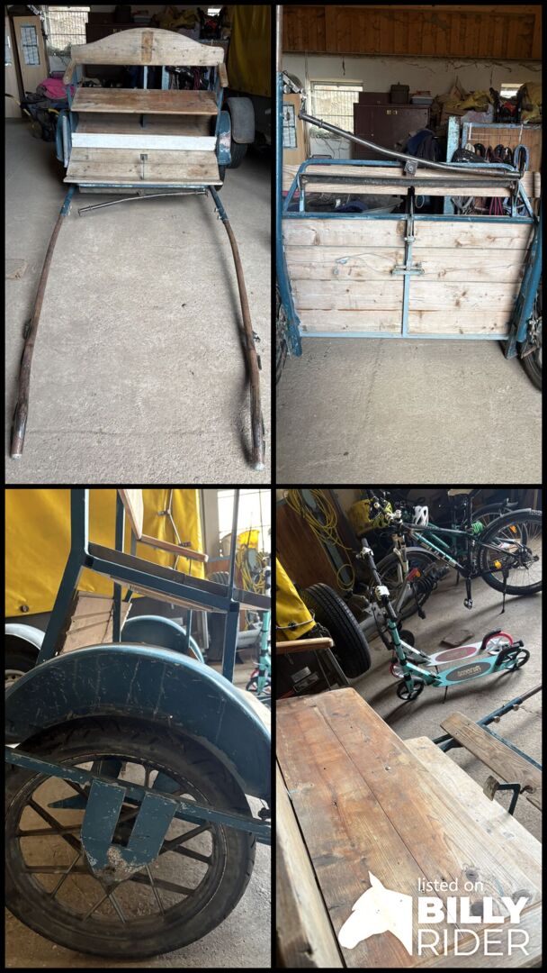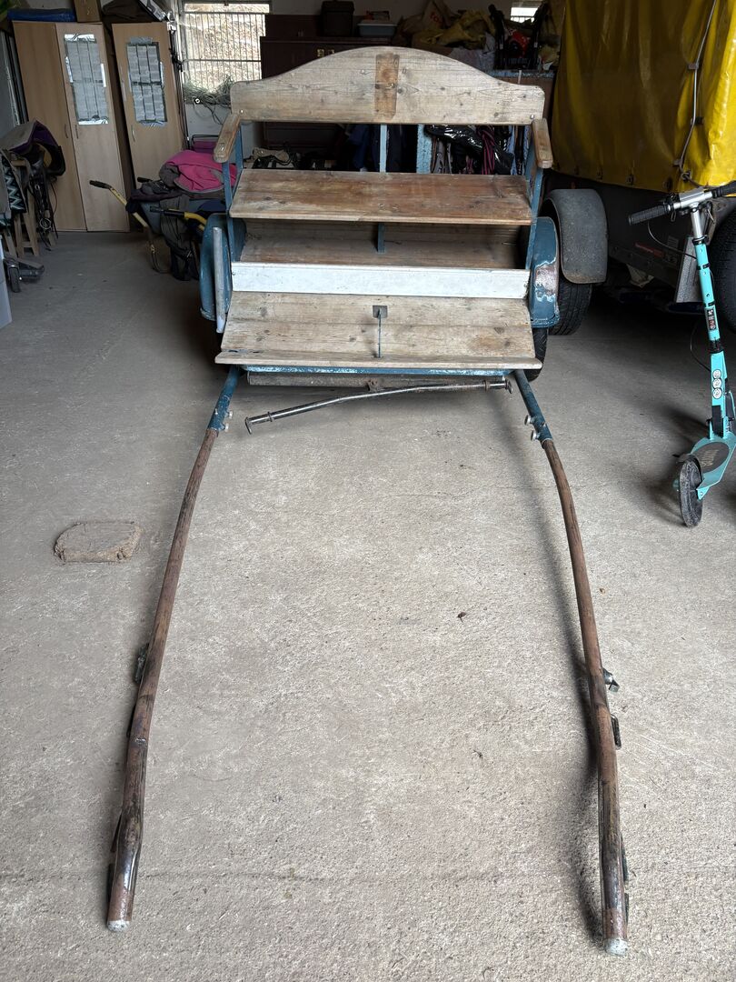 Der Gig ist intakt und fahrbereit, Reifen und Schläuche sind gut. Er hat eine Bremse, welche geklemmt hat und somit im Moment nicht aktiv ist, das könnte ein Bastler aber leicht reparieren. Für Ponies von ~ 1,10 bis 1,40m. Die Anzen sind in der Länge verstellbar.