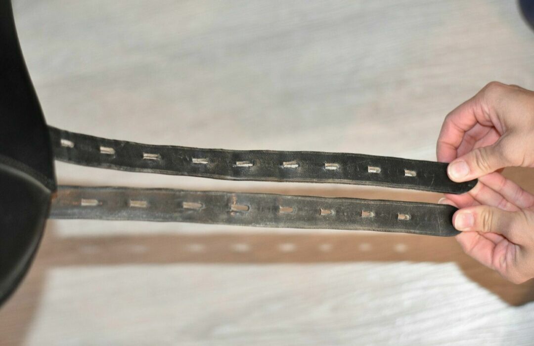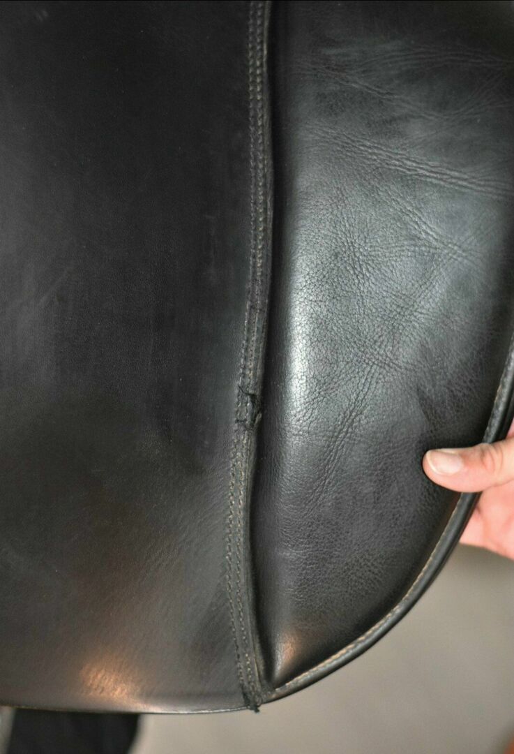 Der Sattel ist in einem sehr guten gebrauchten Zustand. Lediglich eine Naht am Sattelblatt ist etwas locker (siehe Bild), kann aber laut Sattler problemlos genäht werden.