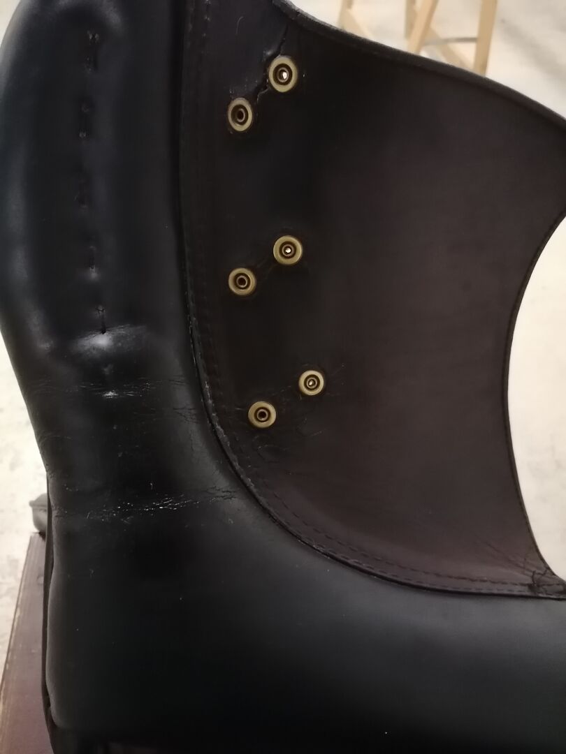 Der Sattel ist zwar alt, wurde aber immer wieder in Teilen erneuert. Die Sitzfläche wurde z. B. erneuert mit wunderbar griffigem, aber bequemen Leder. Außerdem wurde der Wirbelkanal verbreitert um es auch dem Pferd bequem zu machen. Der Sattel wurde frisch gepolstert (natürlich auch schön weich) und danach nur ca 2 Monate genutzt. Lediglich zwei Zierknöpfe fehlen und an der Unterseite ist das Leder rissig. Hier Bedarf es regelmäßiger Pflege. Das wurde leider von der Vorbesitzerin vernachlässigt, hat bei mir jedoch nie gestört.