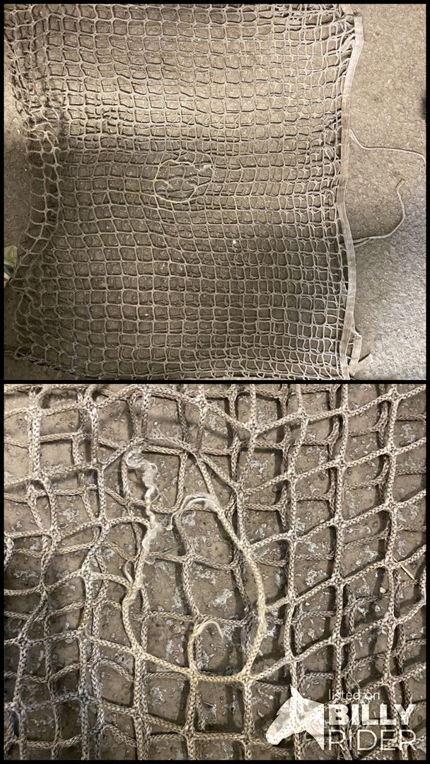 Verkaufe Heunetz zum aufhängen mit Öffnung oben die man zuknoten kann zum leichteren Befüllen. Leider ist auf einer Seite in Loch (s.Bild). Dieses kann man aber entweder mit Strohband flicken oder einfach auf die Wandseite drehen