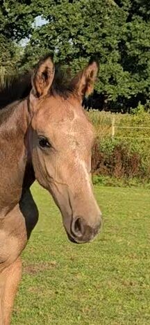 Zum Verkauf steht ein am 28.04.2025 geborenes Hannoveraner Stutfohlen, das in puncto Genetik und Potenzial keine Wünsche offen lässt.