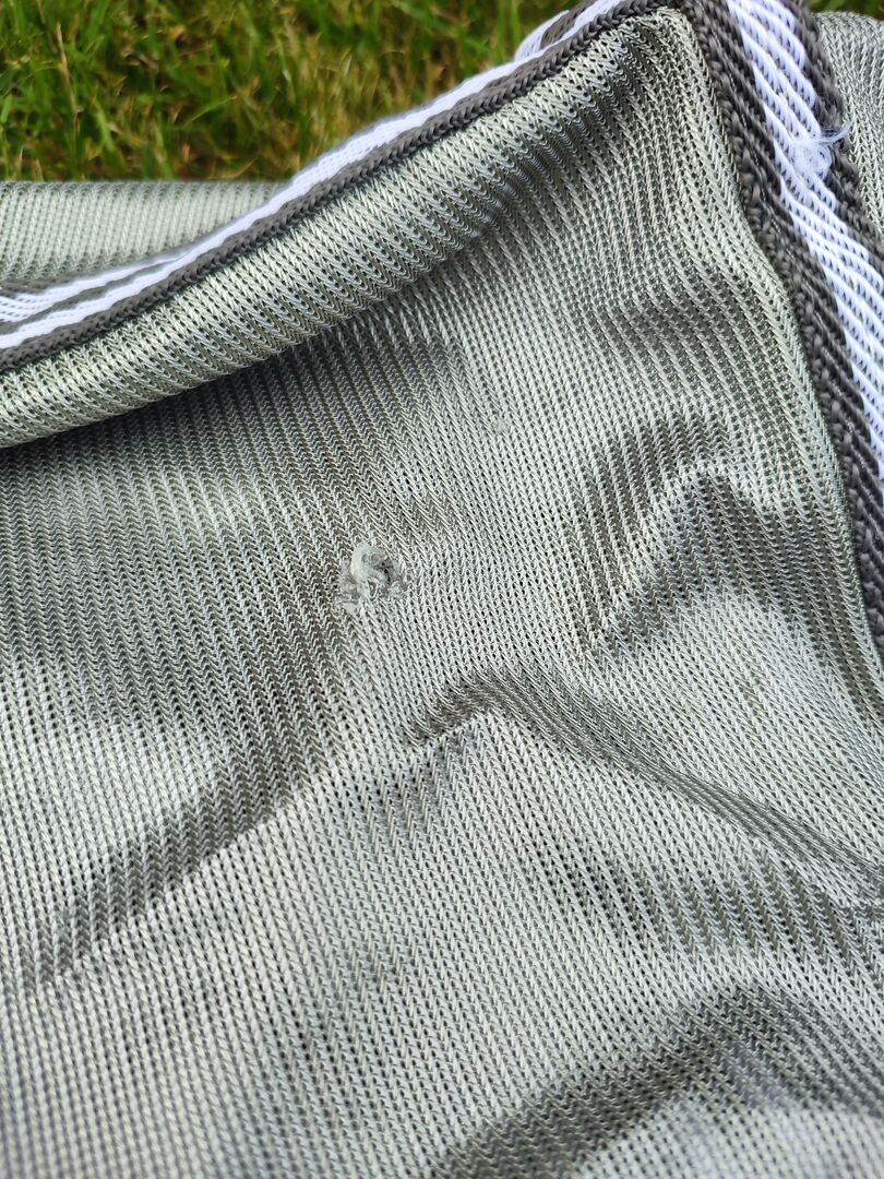 Sie wurde von meinem alten Wallach nur zwei Wochen getragen. Drei kleine Minilöcher hat sie, sind aber wirklich klein und beeinträchtigen keineswegs die Funktion Neupreis 69 €
