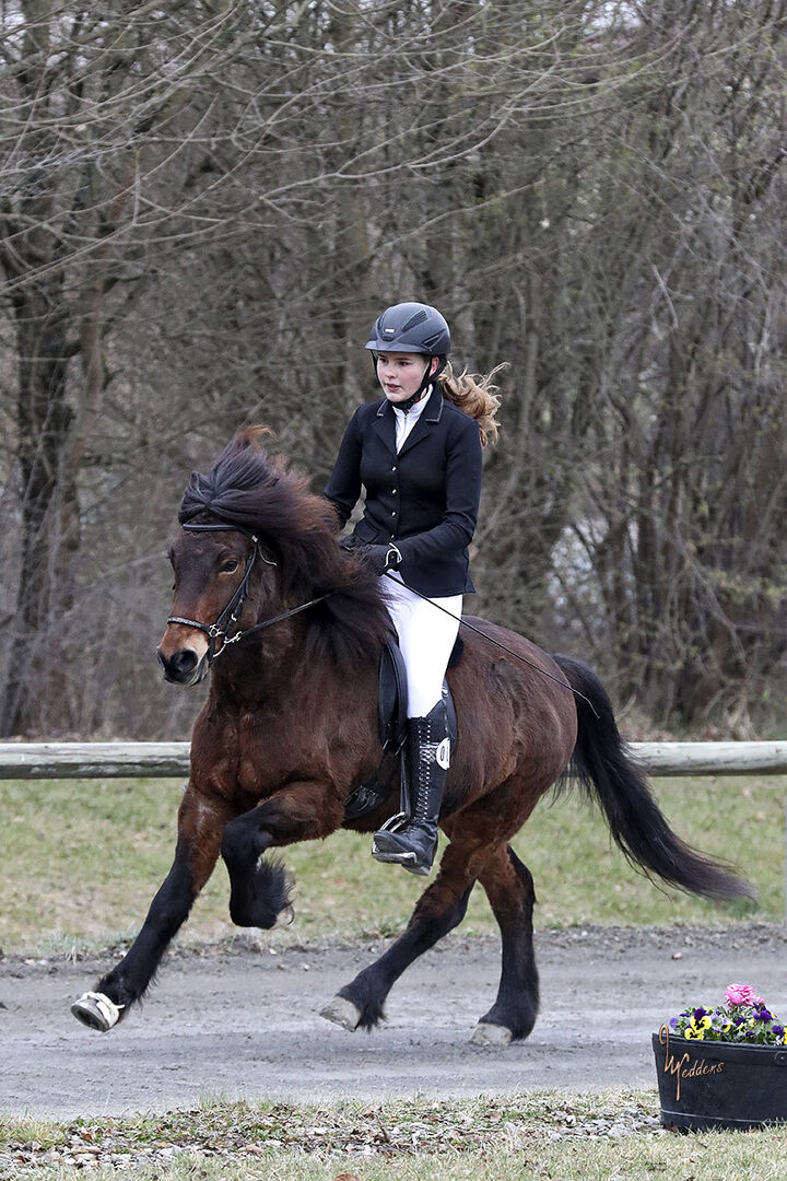 Bester Freund und Herzensbrecher zu verkaufen. Fáfnir wird bei uns liebevoll Faupsi genannt und besticht mit seinem Charakter aus Gold. Er verfügt über 5 Gänge, wird aber zurzeit nur 4-Gängig geritten, wobei der Pass leicht zu trainieren ist. Zudem hat er gute Bewegungen in allen Gangarten und viel Takt im Tölt mit und ohne Zügel. Faupsi ist sehr leistungsbereit und zeigt sich stets von seiner besten Seite. Auch mit Zirkuslektionen ist er leicht zu begeistern. Zudem hat er mittleres Temperament und wäre somit auch für junge Reiter gut geeignet. Fáfnir geht alleine und in der Gruppe ins Gelände, kennt Halle, Bahn und Longierhalle. Faupsi hat einen Stockmaß von 140cm und ist 2014 geboren. Er lässt sich problemlos beschlagen und verladen. Natürlich wurde er regelmäßig geimpft. Zurzeit steht er in einer reinen Wallach Herde und bevorzugt nasses Heu oder Heulage, wobei trockenes Heu ebenfalls kein Problem darstellt.