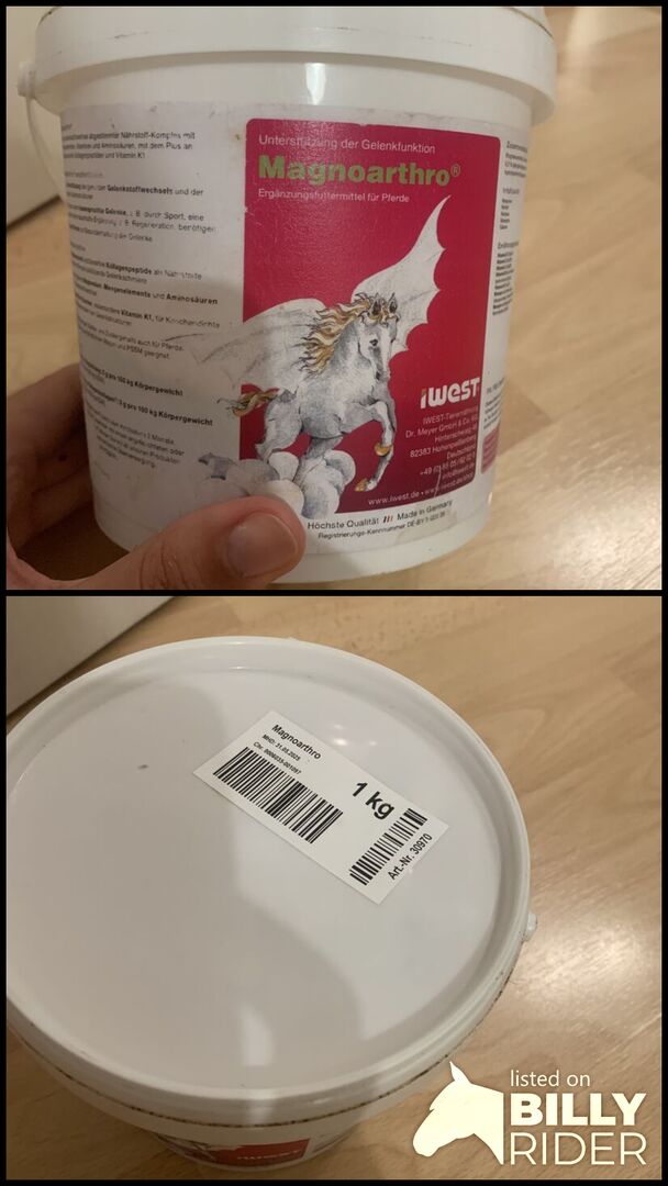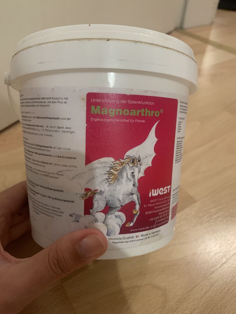Gebe eine angefangene Packung Magnoarthro ab. Meine Stute frisst es nicht mehr. Es sind noch 620 Gramm drin.