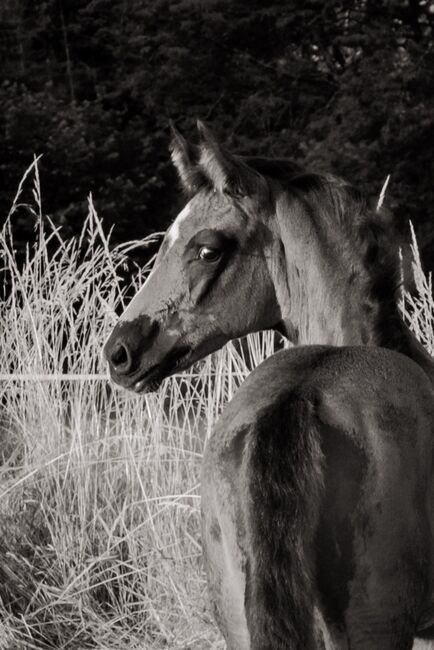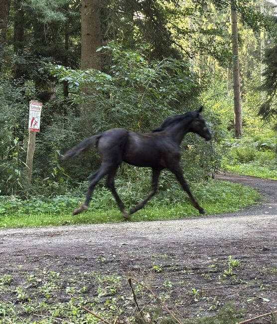 Zum Verkauf steht eine wunderschöne Hannoveraner Stute, geboren 04/ 2025. Sie präsentiert sich in einer eleganten Rappfarbe und bekommt ein geschätztes Stockmaß von 170 cm.