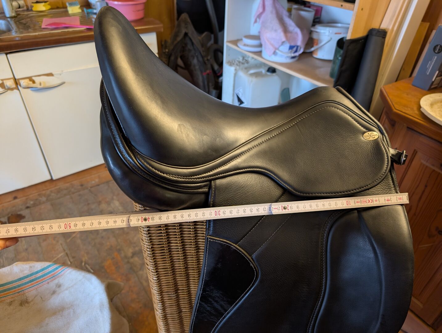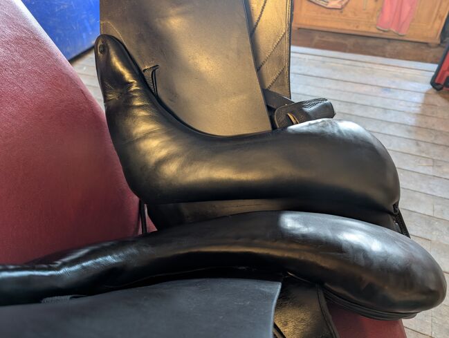 Dressursattel Jorge Canaves Celebration Dressage in der Größe 17,5 Zoll zum Verkauf an. Ich habe den Sattel beim Kauf meines Pferdes mit dazu gekauft.