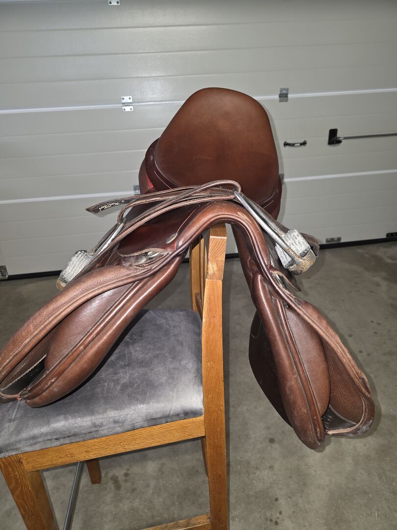 Der Sattel weist typische Gebrauchsspuren auf, befindet sich aber insgesamt in einem top gepflegten, sehr guten Zustand. Das Leder ist weich, geschmeidig und bestens erhalten – bereit für viele weitere Trainings- und Ausreitstunden.